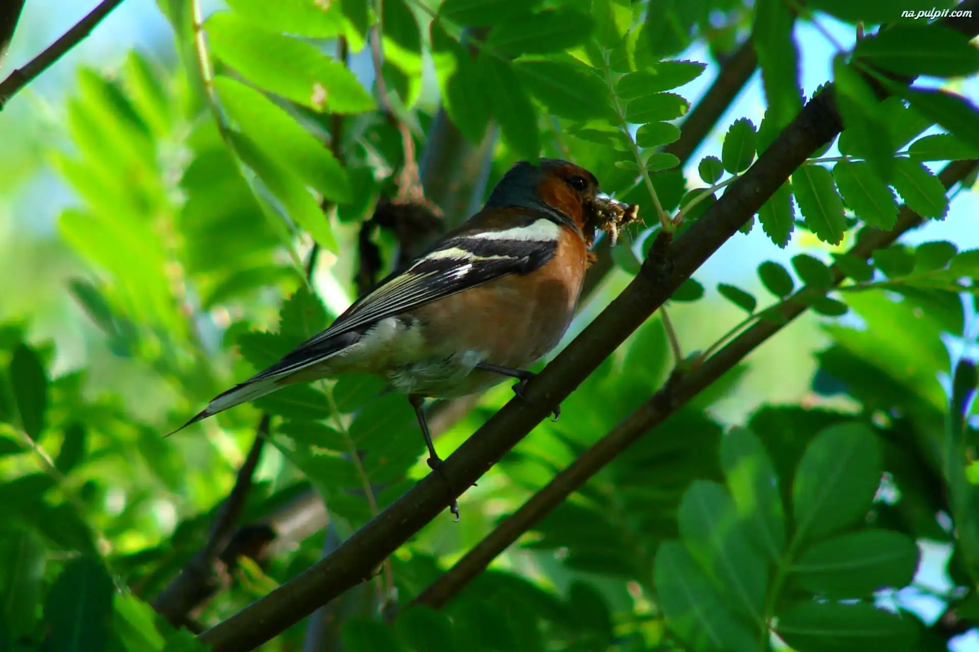 Liście, Pokarmem, Z, Zięba, Gałązki Na Pulpit