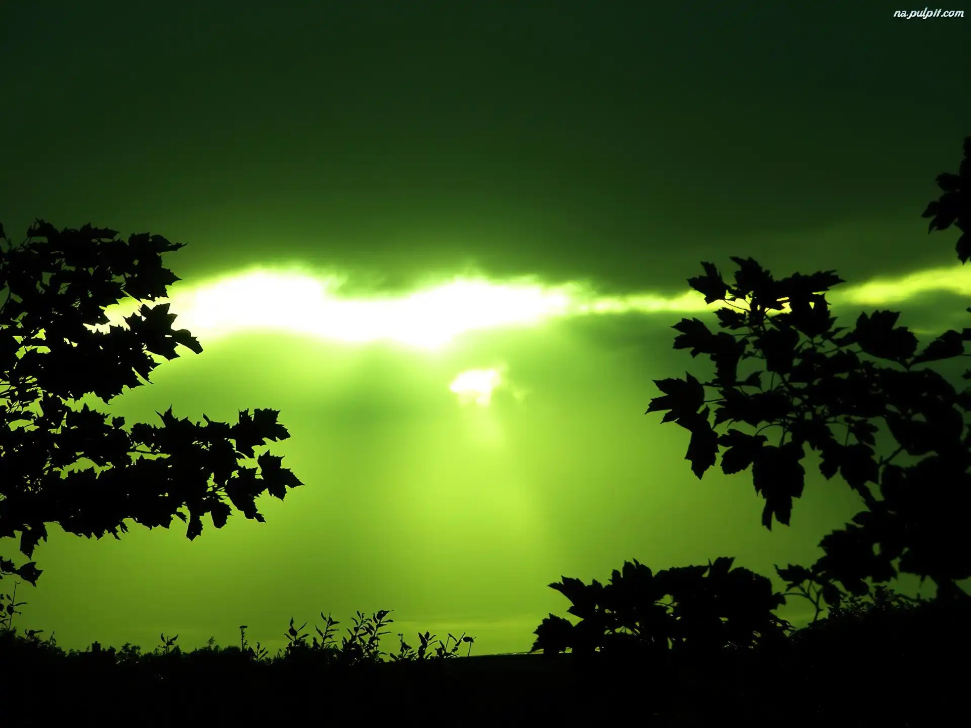 Liście, Zachód, Zielony, Słońca Na Pulpit