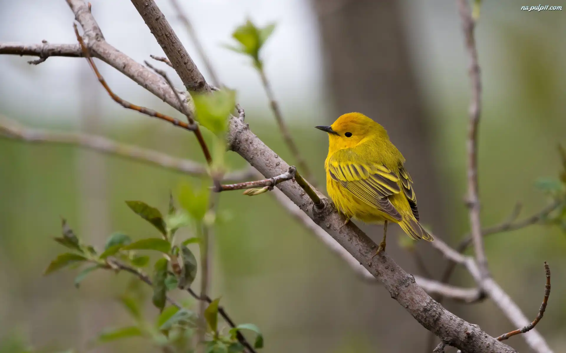 Gałązki, Ptak, Żółty, Liście, Lasówka złotawa Na Pulpit
