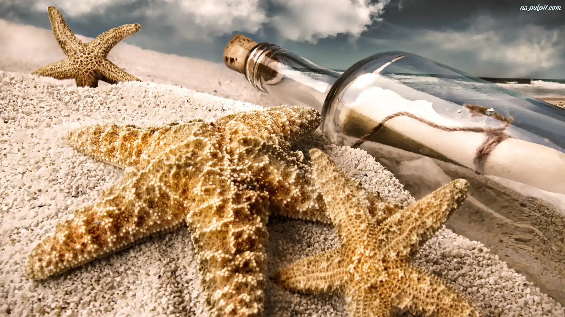 List, Rozgwiazda, Piasek, Plaża, Butelka Na Pulpit