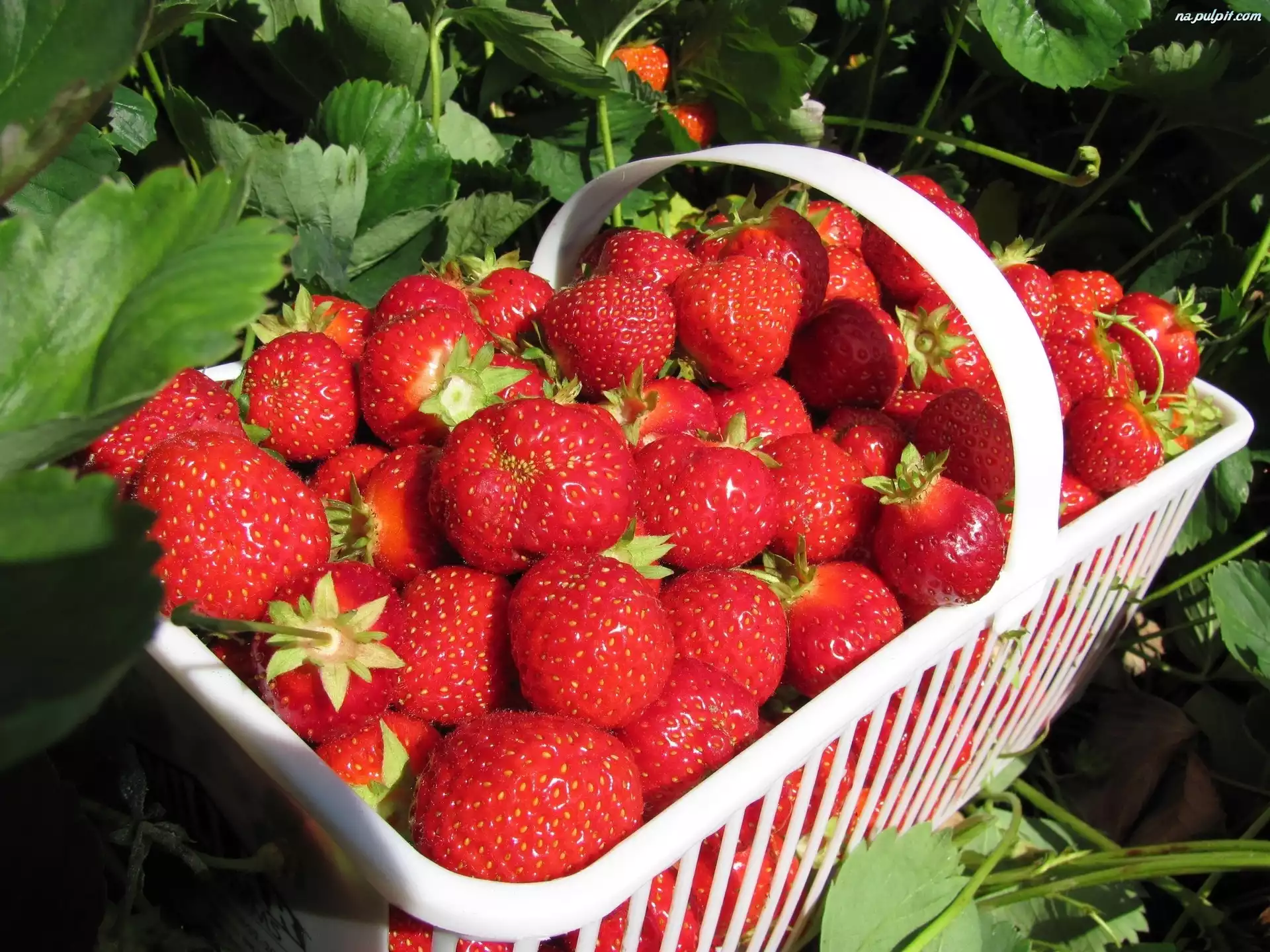 Listki, Dojrzałe, Koszyk, Biały, Truskawki Na Pulpit