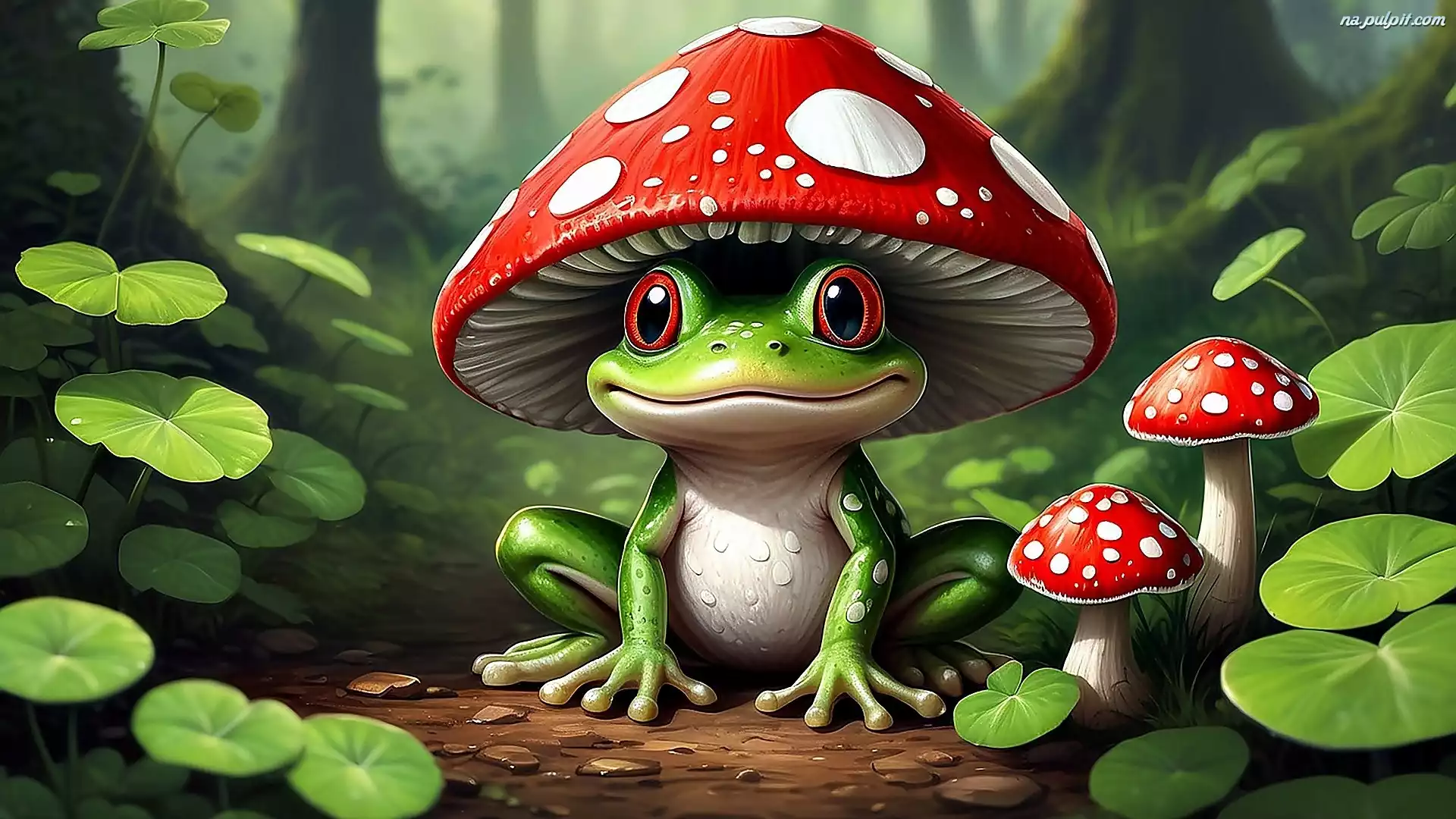 Muchomory, Grafika, Zielone, Listki, Żaba, Grzyby Na Pulpit