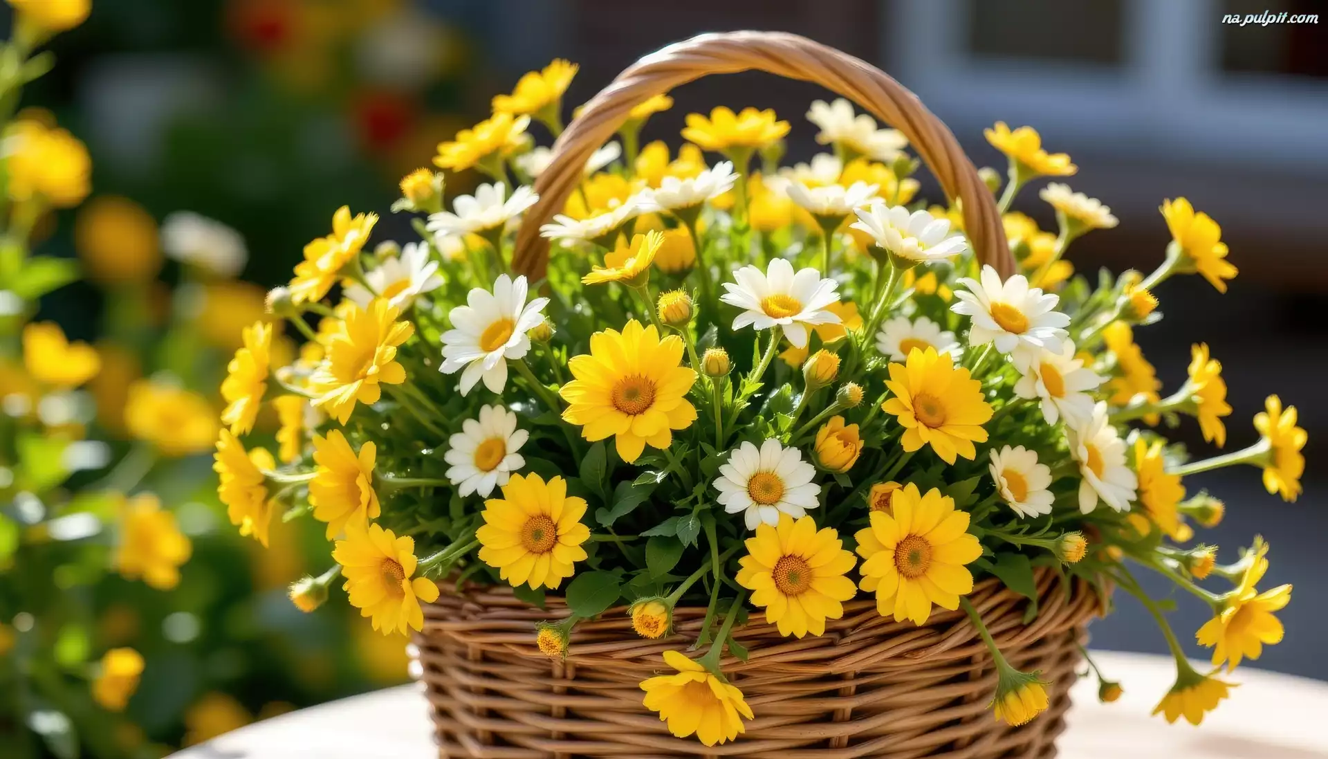 Wiklinowy, Żółte, Kwiaty, Listki, Białe, Koszyk Na Pulpit