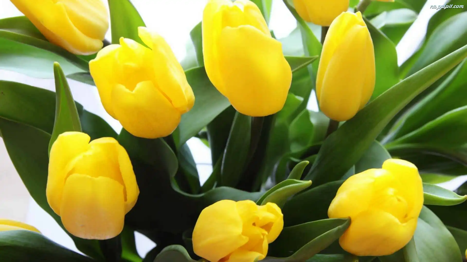 Listki, Tulipany, Żółte, Zielone Na Pulpit