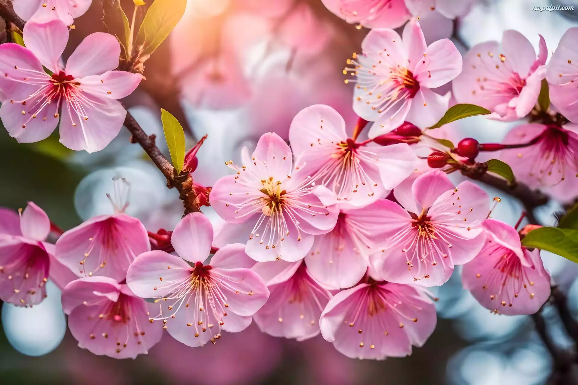 Gałązki, Różowe, Pręciki, Listki, Kwiaty, Drzewo owocowe Na Pulpit