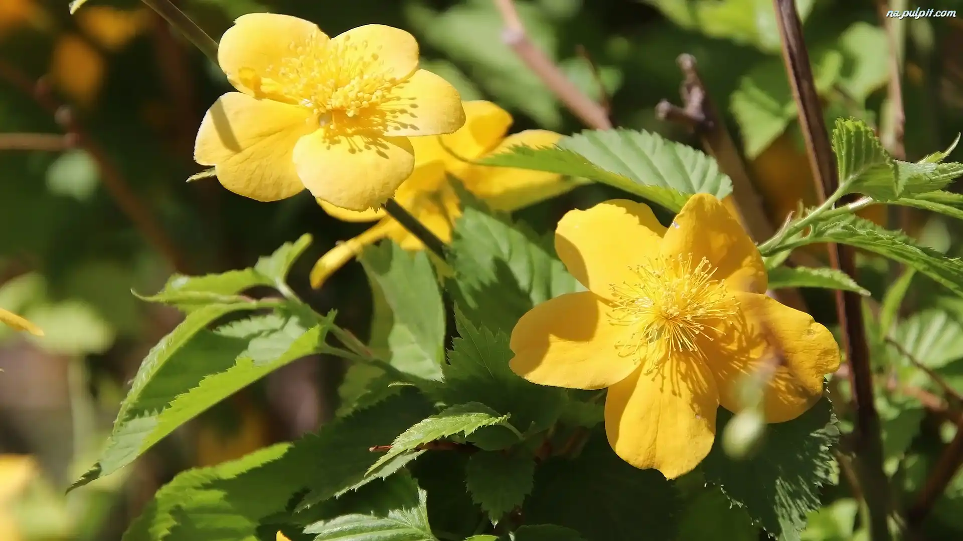 Listki, Róże, Żółte, Kwiaty, Róża hugonis Na Pulpit
