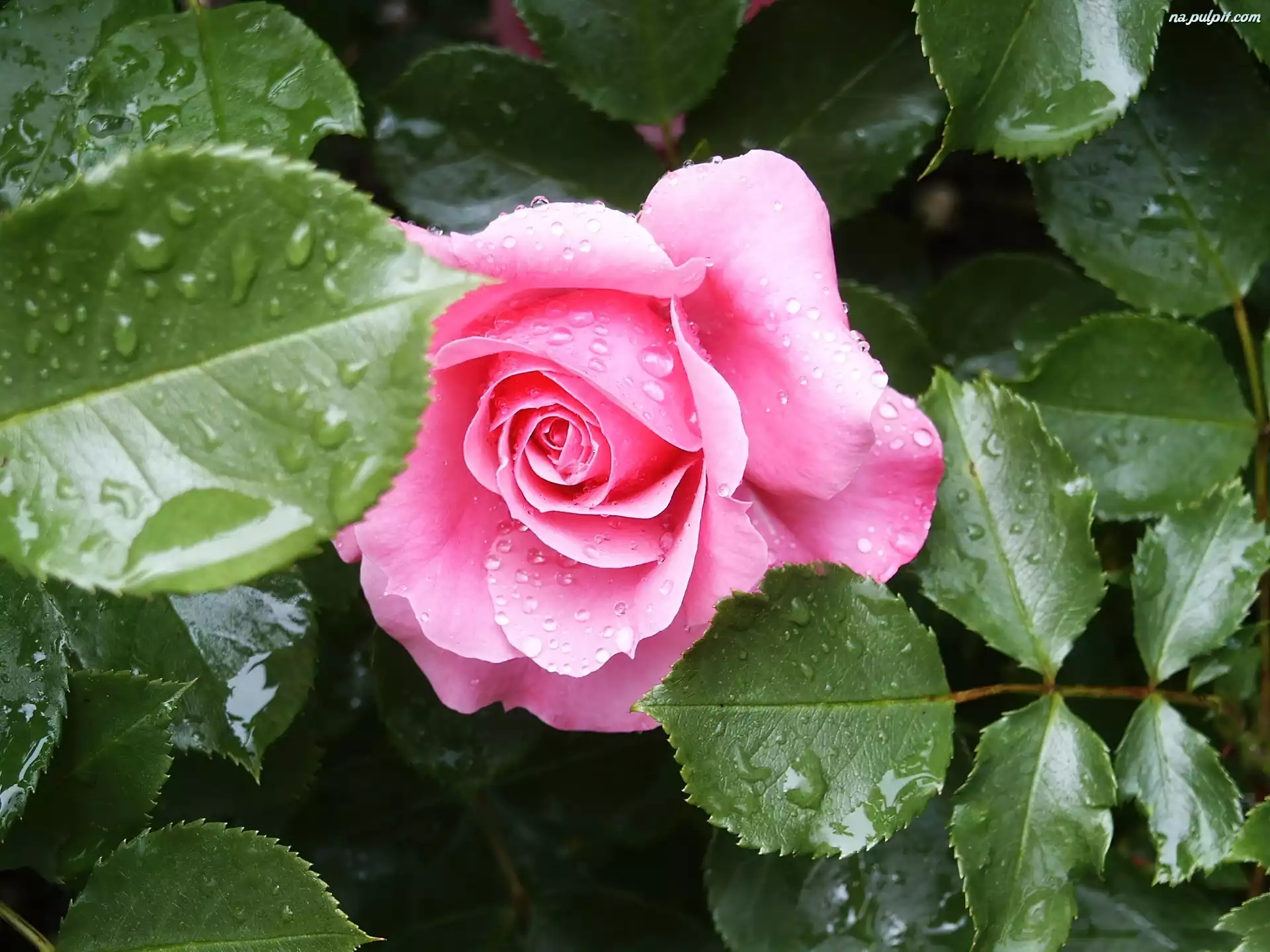 Listki, Róża, Różowa, Zielone Na Pulpit