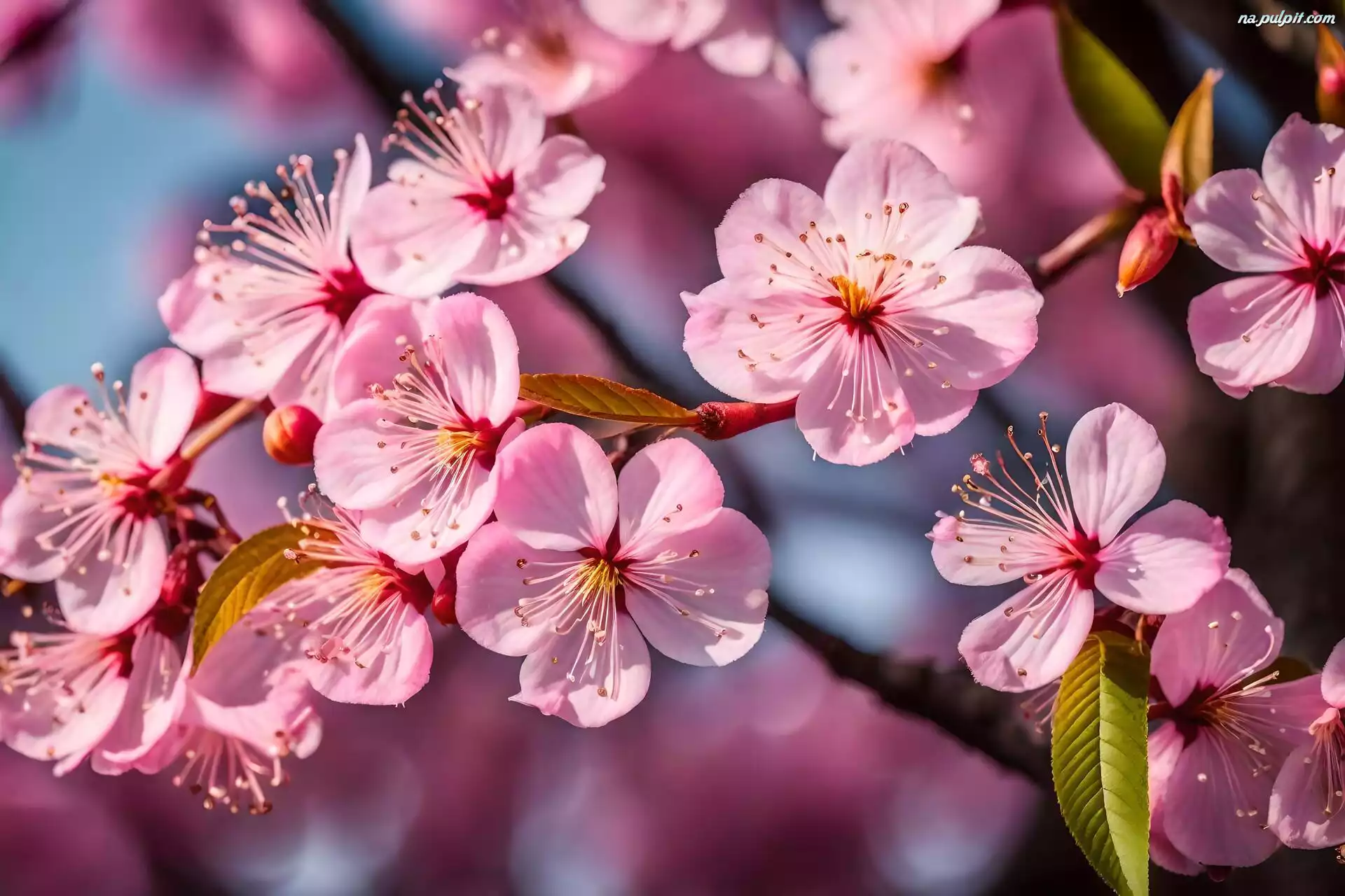 Drzewo owocowe, Różowe, Listki, Gałąź, Kwiaty, Zbliżenie Na Pulpit