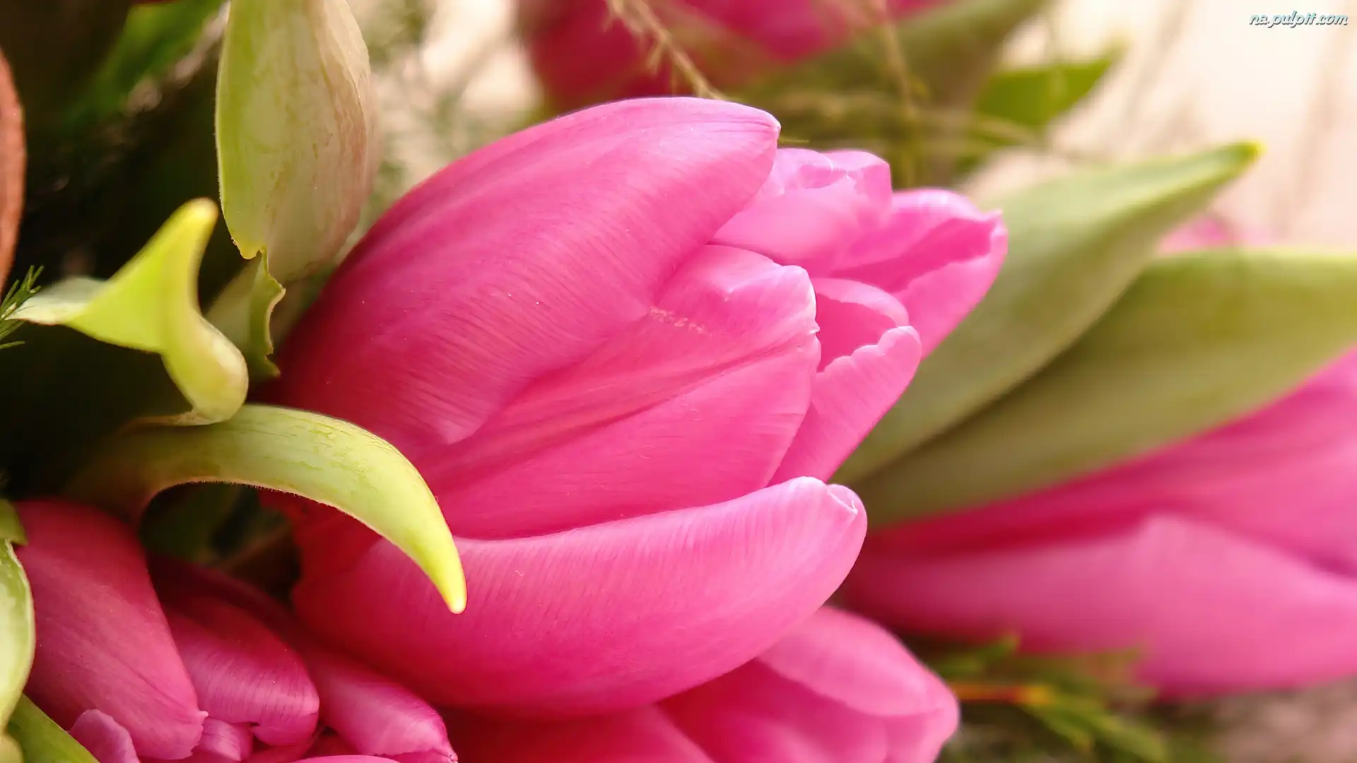 Listki, Tulipany, Różowe, Zielone Na Pulpit