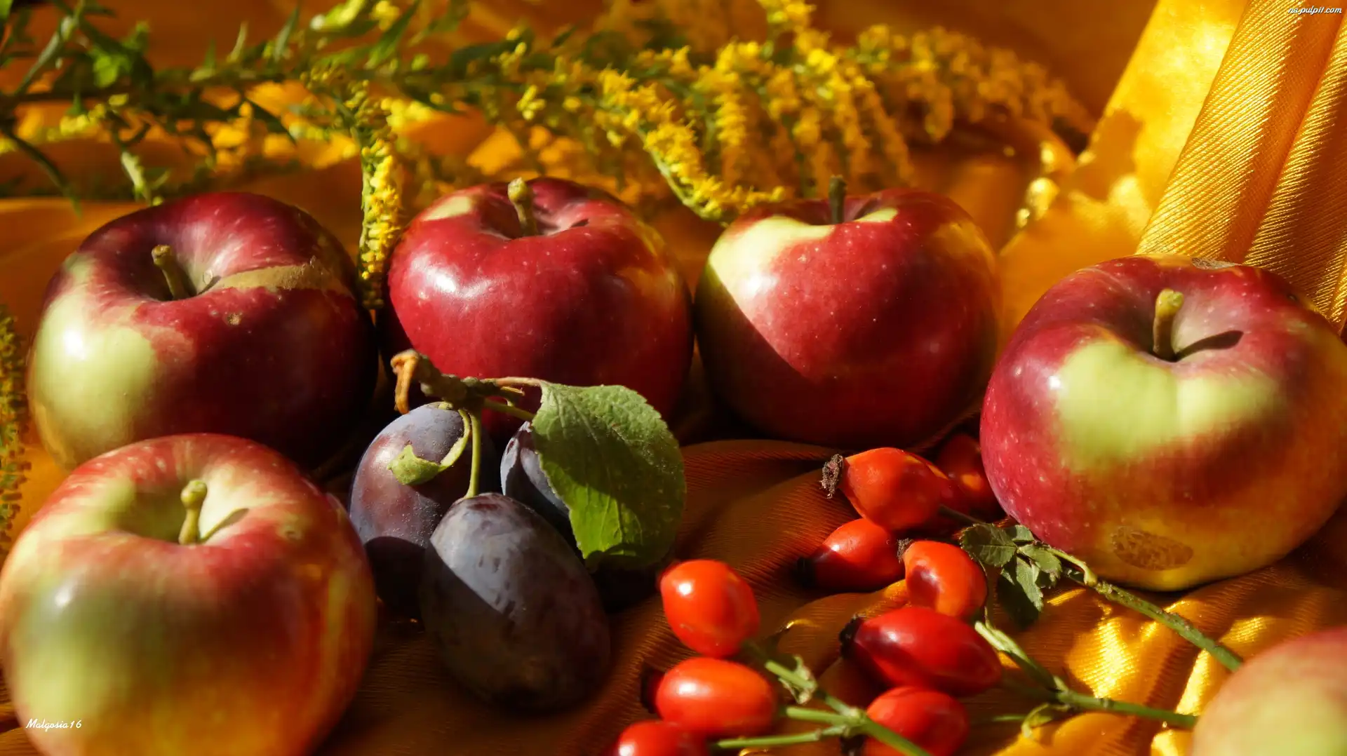 Śliwka, Jabłka, Owoce, Kompozycja, Dzika Róża