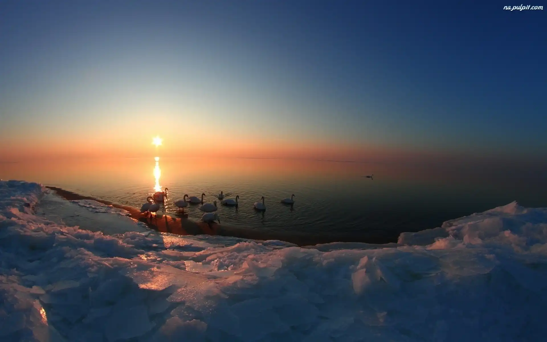 Lód, Zachód, Łabędzie, Słońca