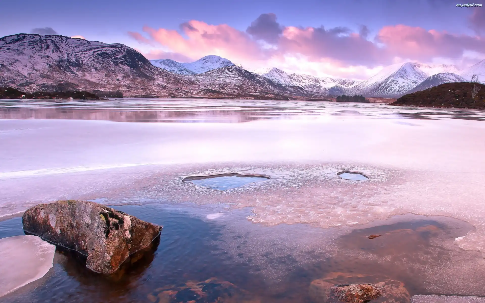 Lód, Jezioro, Góry, Zima Na Pulpit