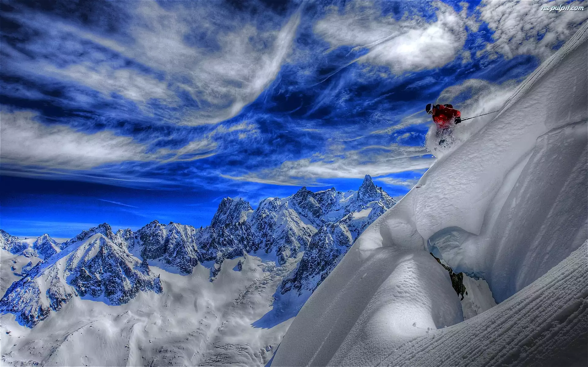 Lodowiec, Góry, Niebo, Narciarz Na Pulpit