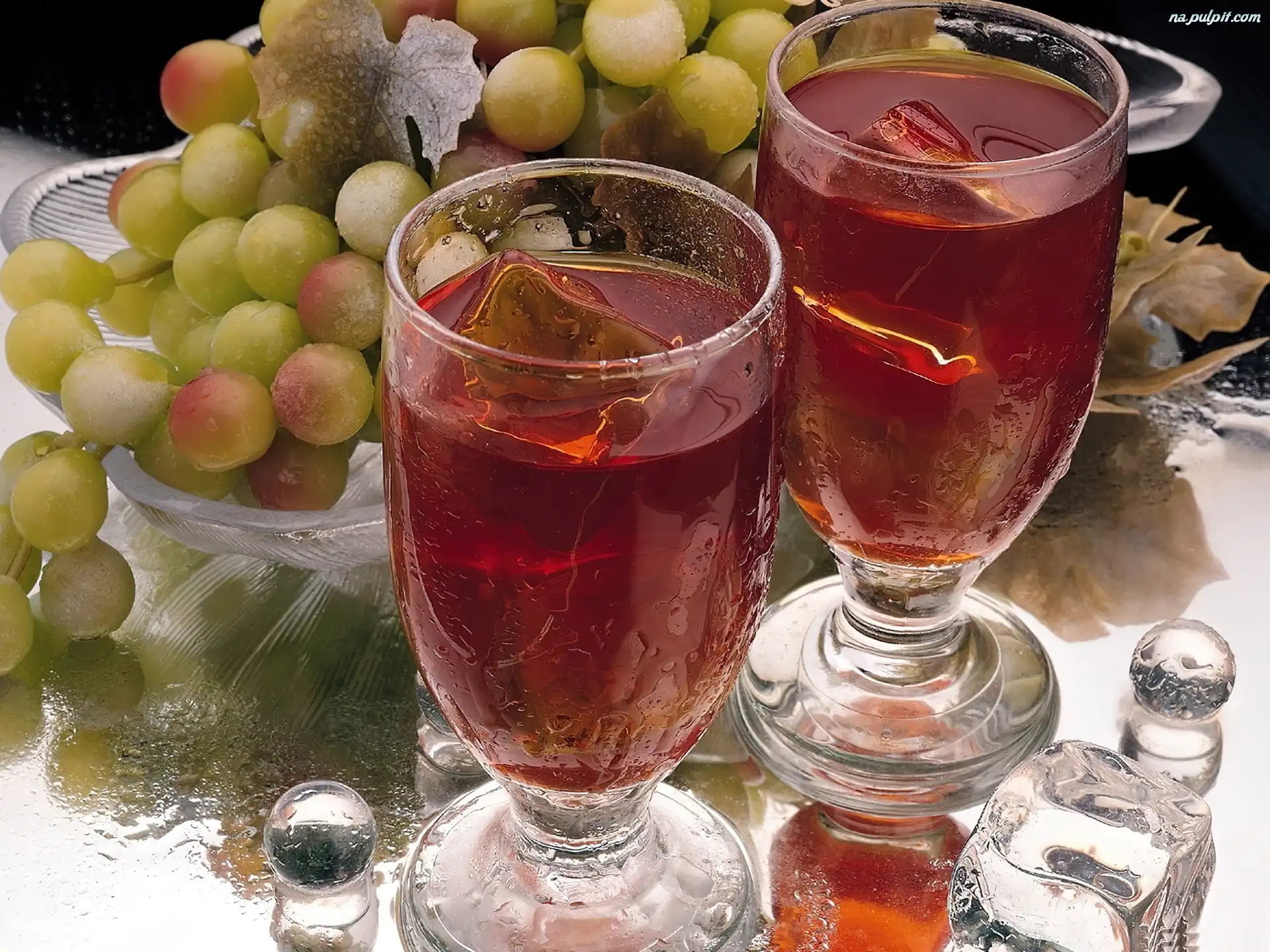 Lodu, Wino, Kieliszki, Winogrona, Kostki