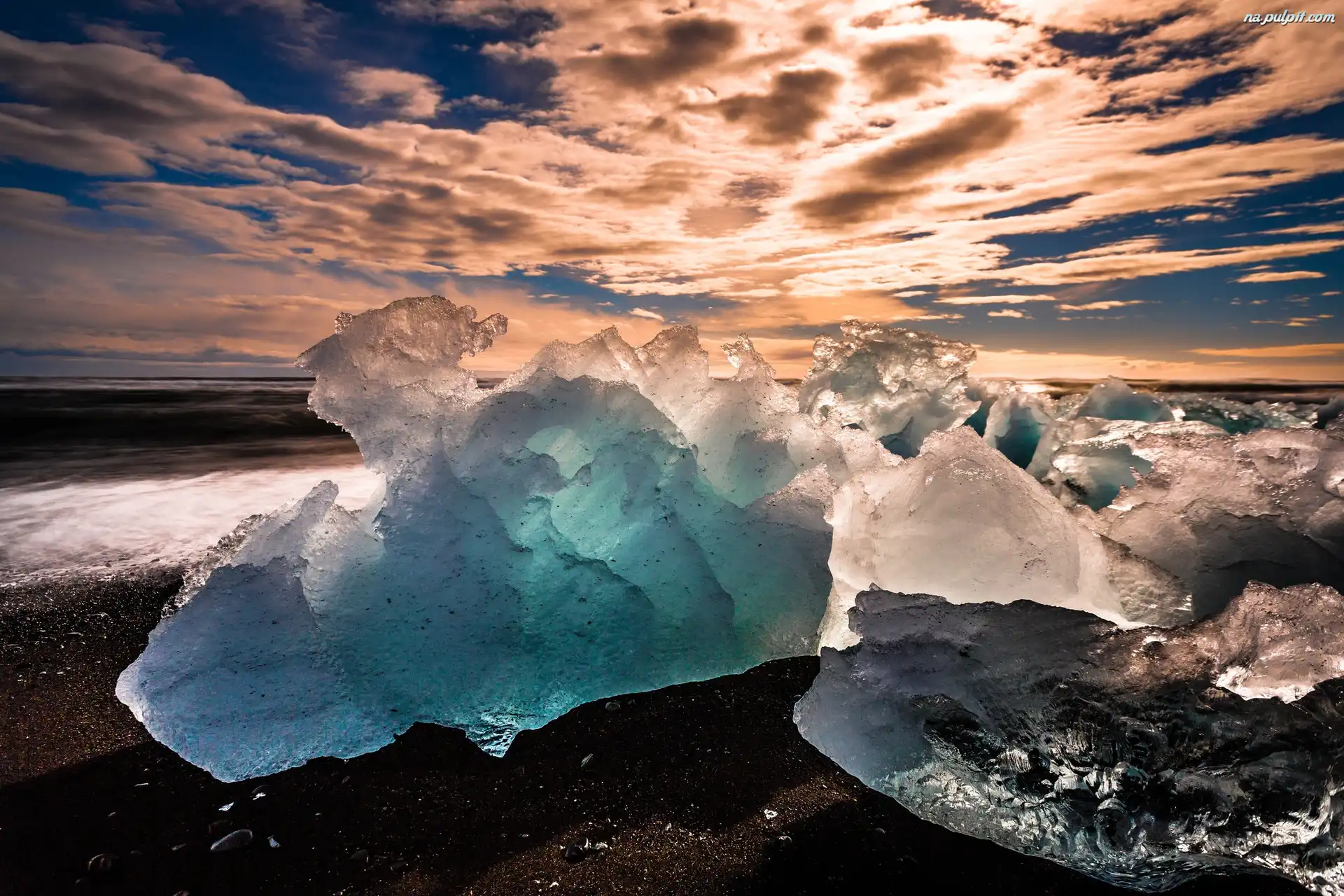 Lodu, Słońca, Zachód, Bryły Na Pulpit