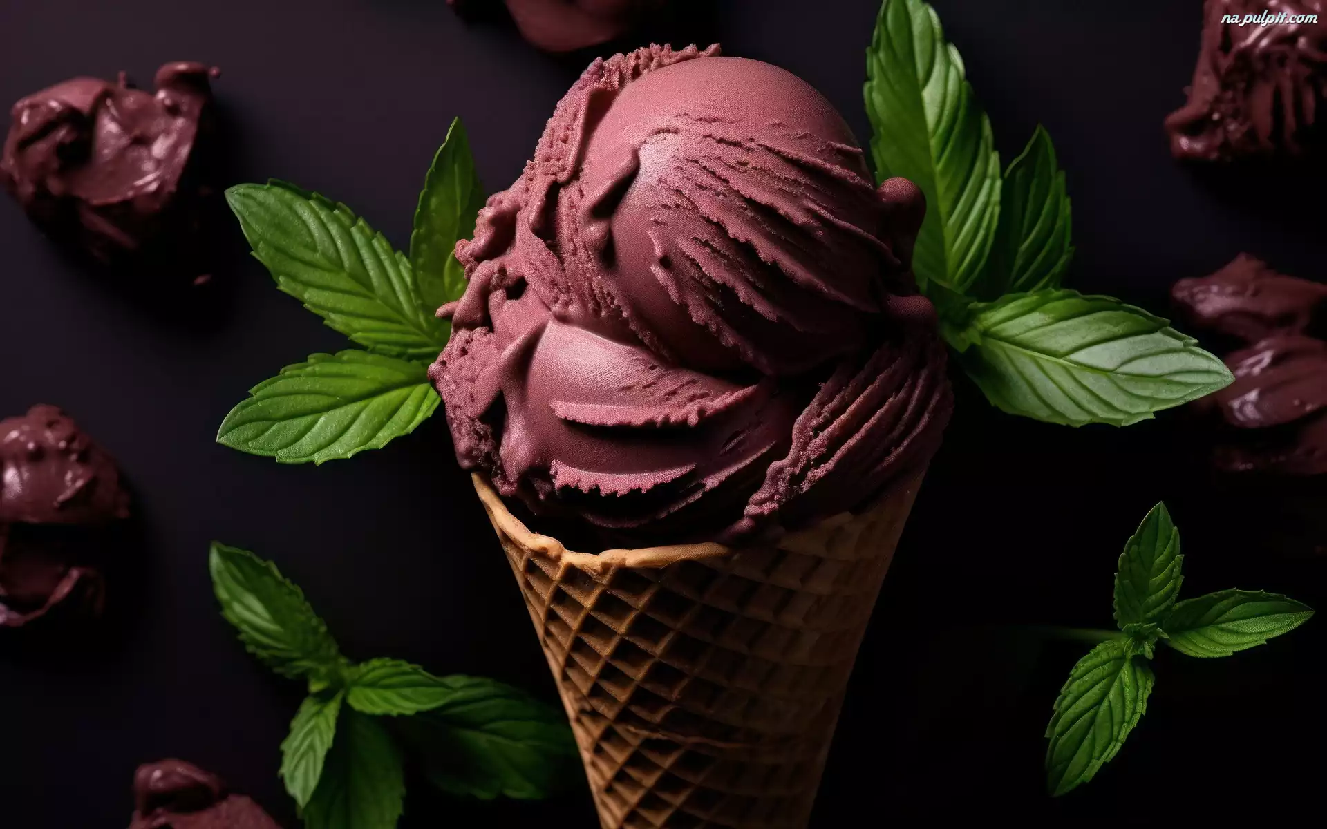 Mięta, Lody, Czekoladowe, Listki, Wafelek Na Pulpit