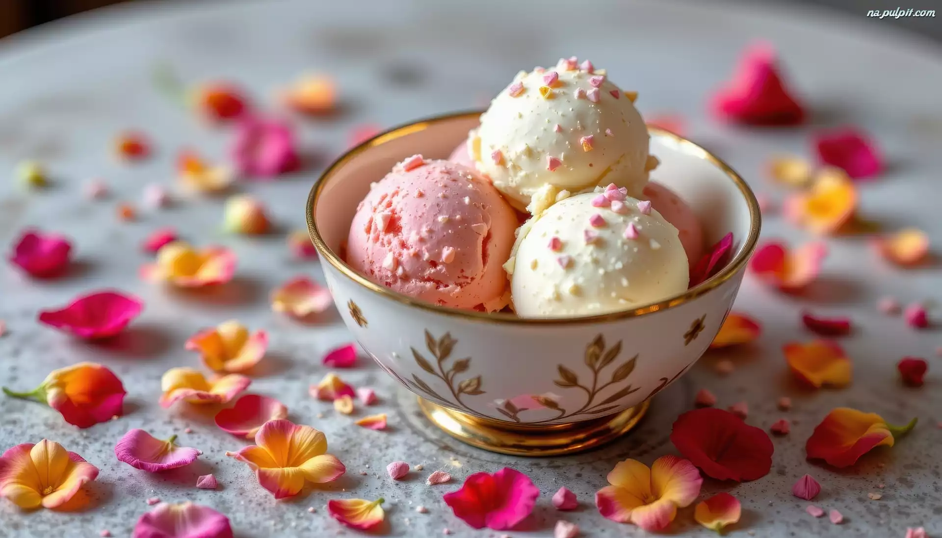 Płatki, Lody, Gałki, Kwiatów, Miseczka