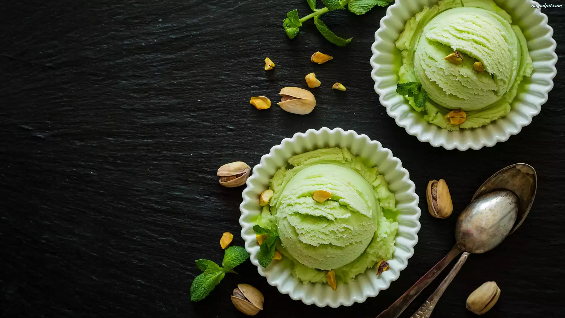 Lody, Listki, Mięty, Miseczki, Pistacjowe, Łyżeczki