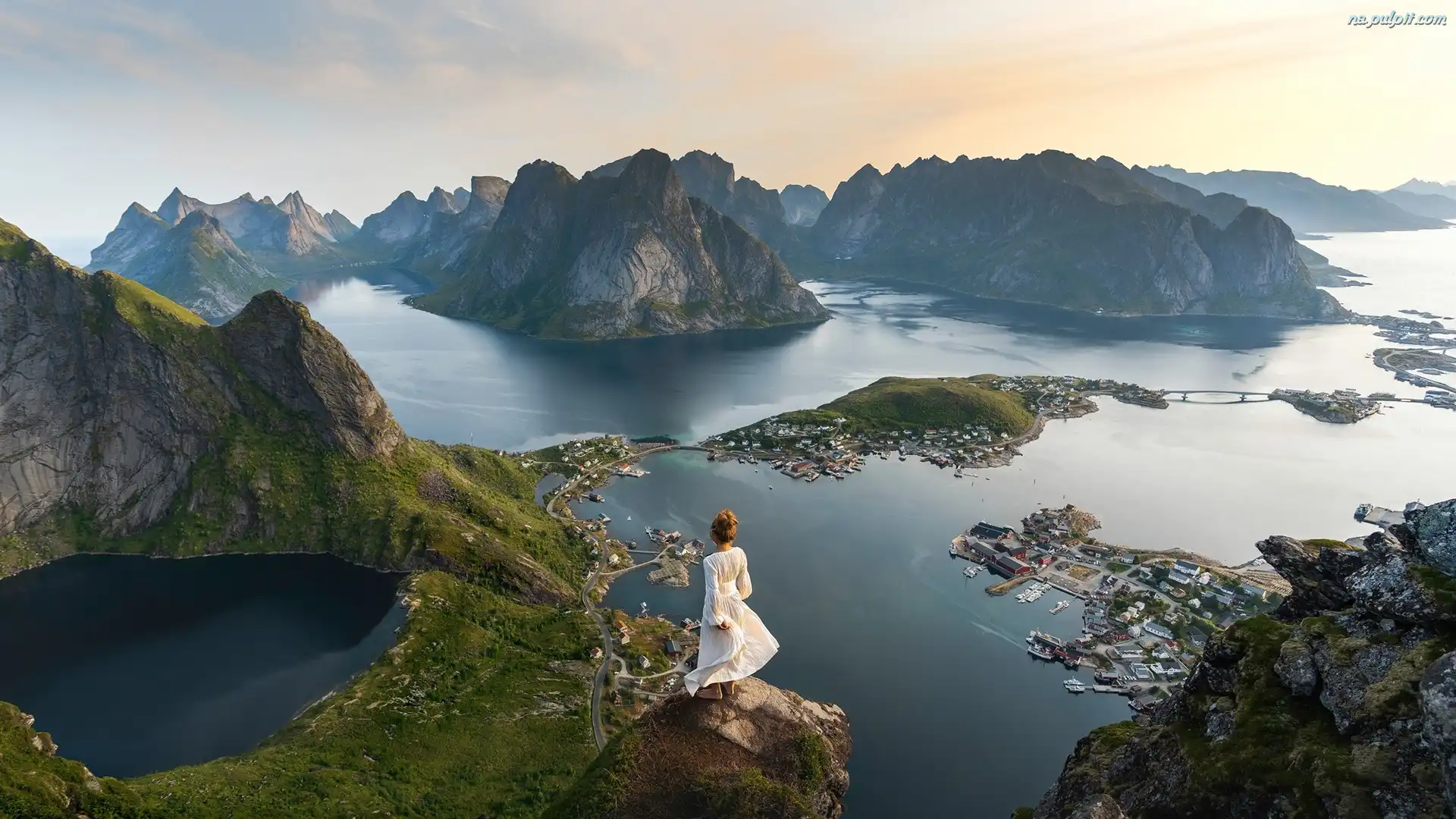 Kobieta, Lofoty, Wioski, Morze Północne, Góry, Norwegia, Domy Na Pulpit