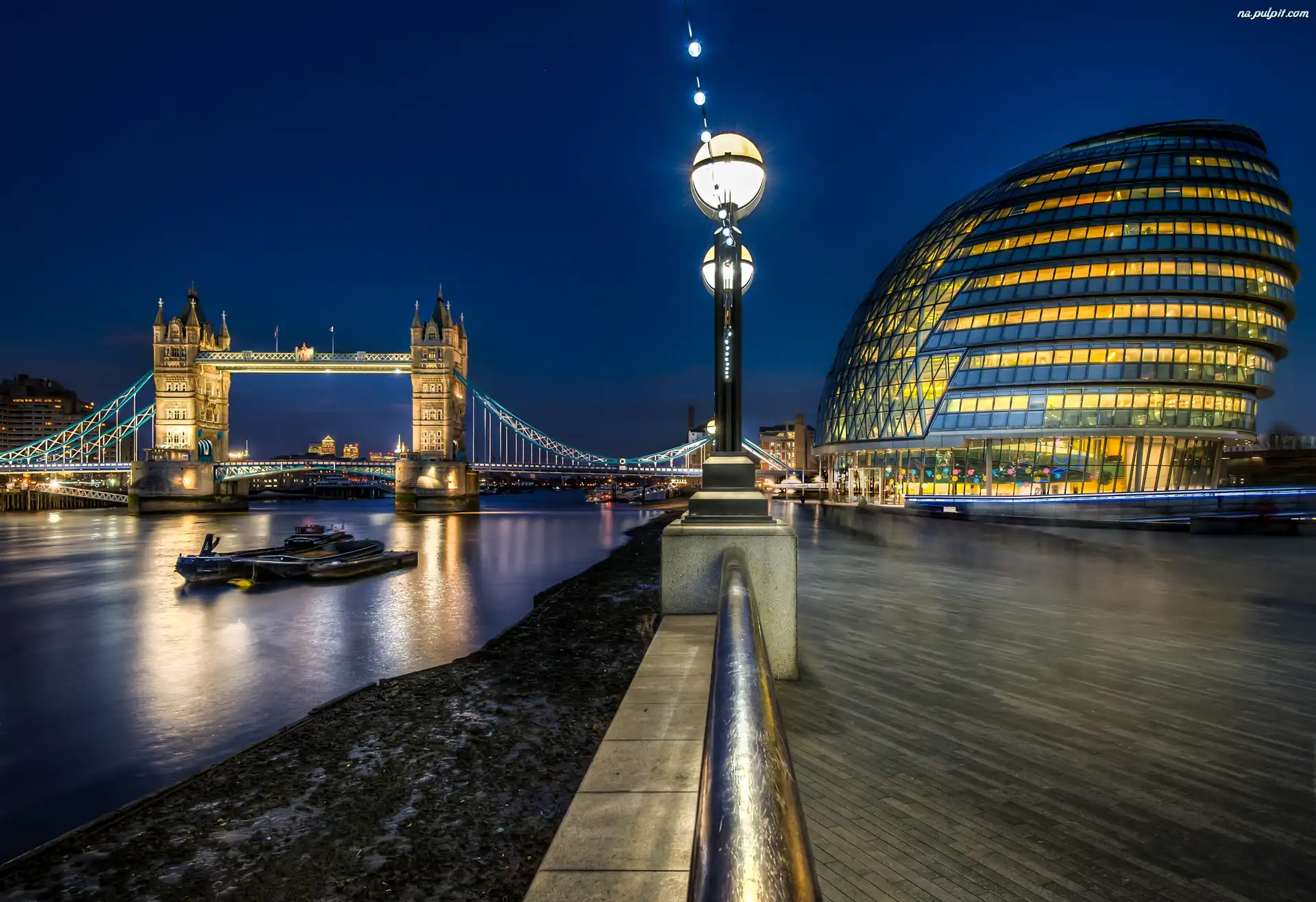 Londyn, Tower Bridge, Oświetlony, Tamiza Na Pulpit