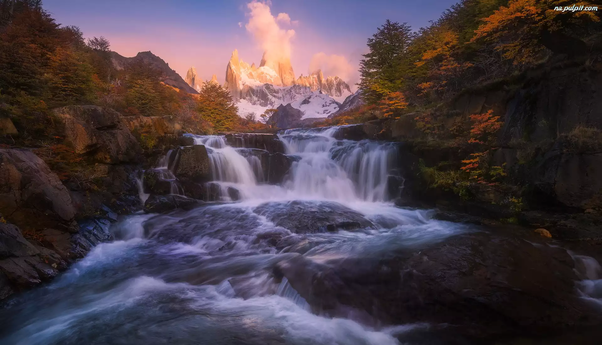 Rzeka, Jesień, Patagonia, Góry Andy, Szczyt, Park Narodowy Los Glaciares, Argentyna, Drzewa, Fitz Roy Na Pulpit |