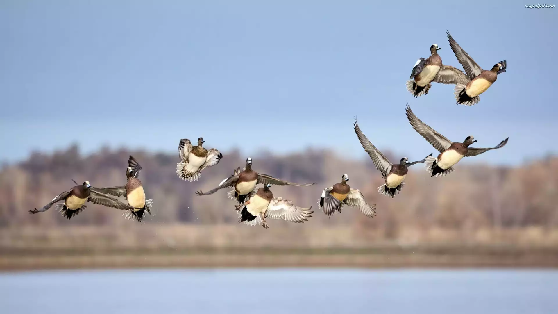 Dzikie, Kaczki, Ptaki, Lot Na Pulpit