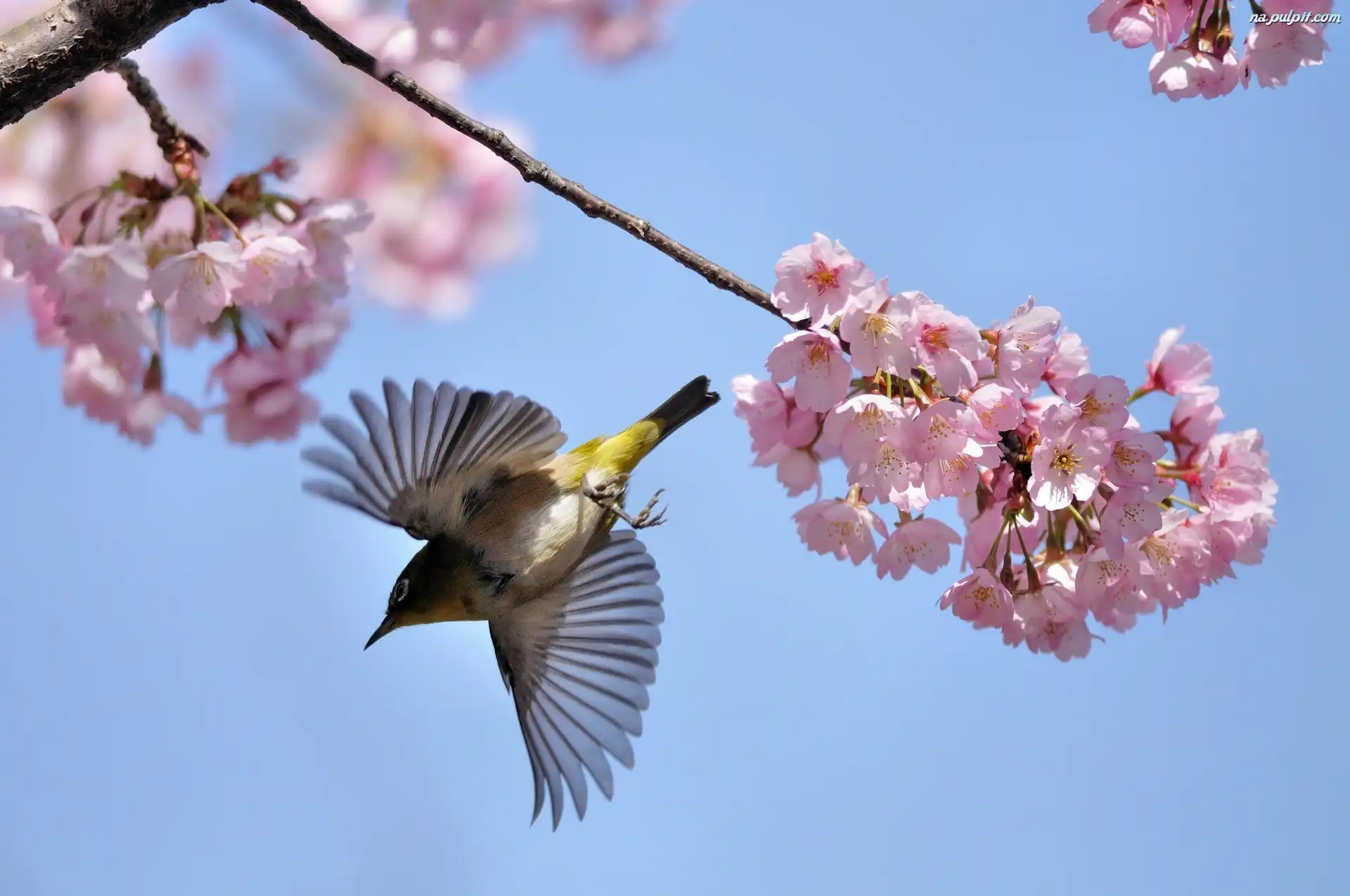Lot, Wiśni, Gałązka, Kwitnąca, Ptaszek