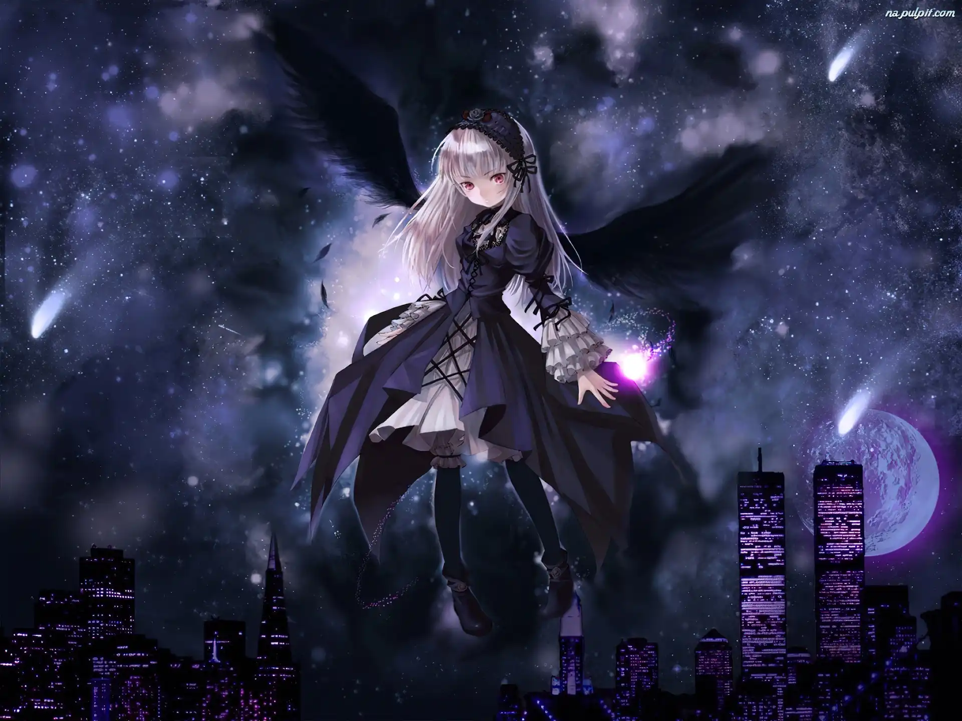 lot, miasto, skrzydłą, Rozen Maiden, kobieta Na Pulpit
