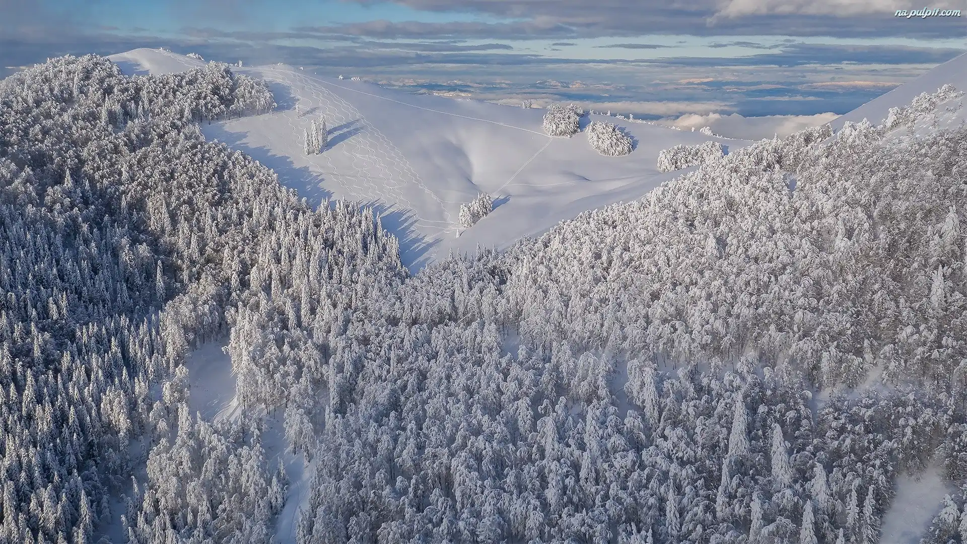 Z lotu ptaka, Drzewa, Ośnieżone, Zima, Góry Na Pulpit