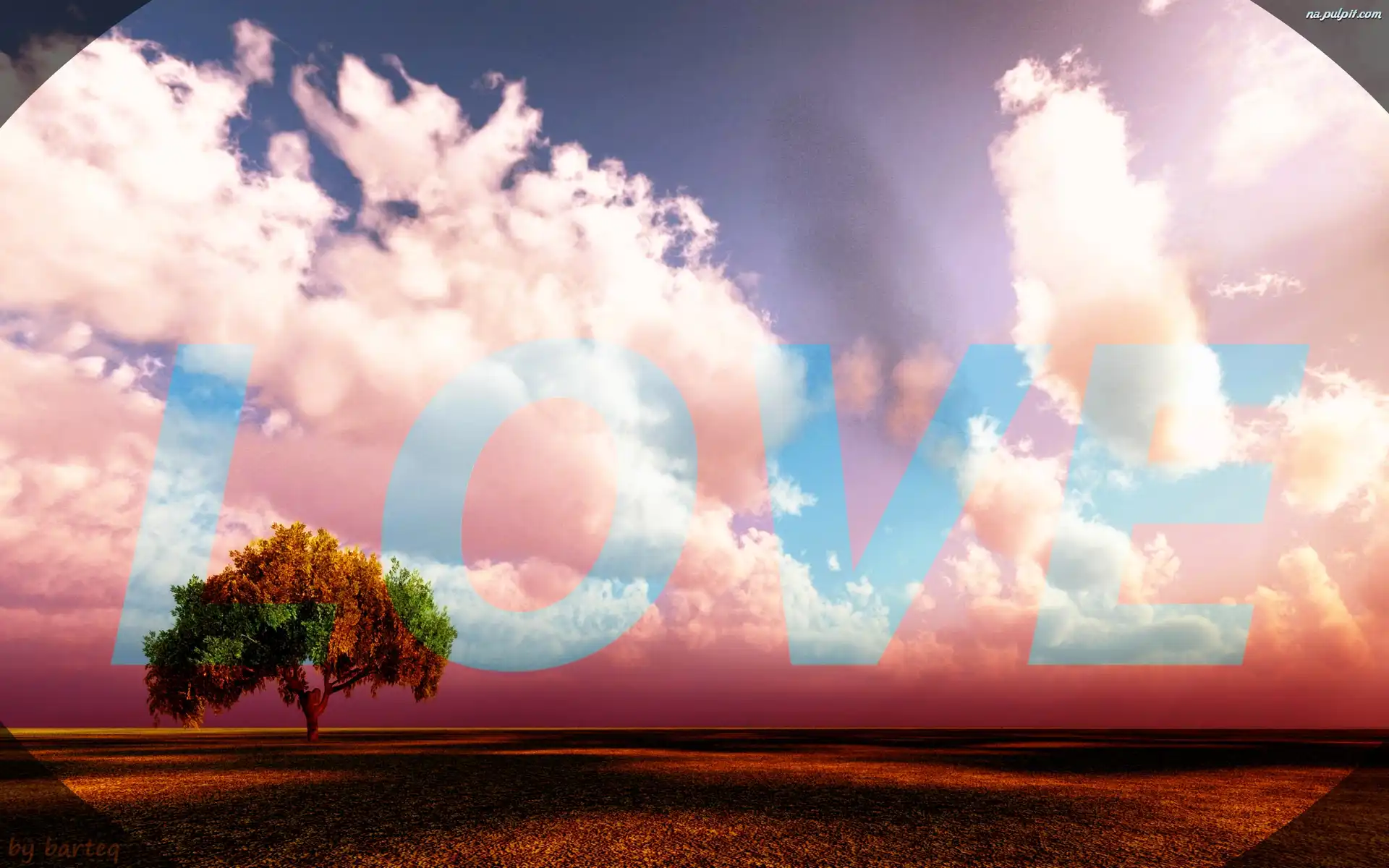 Love, Drzewo, Samotne, Napis