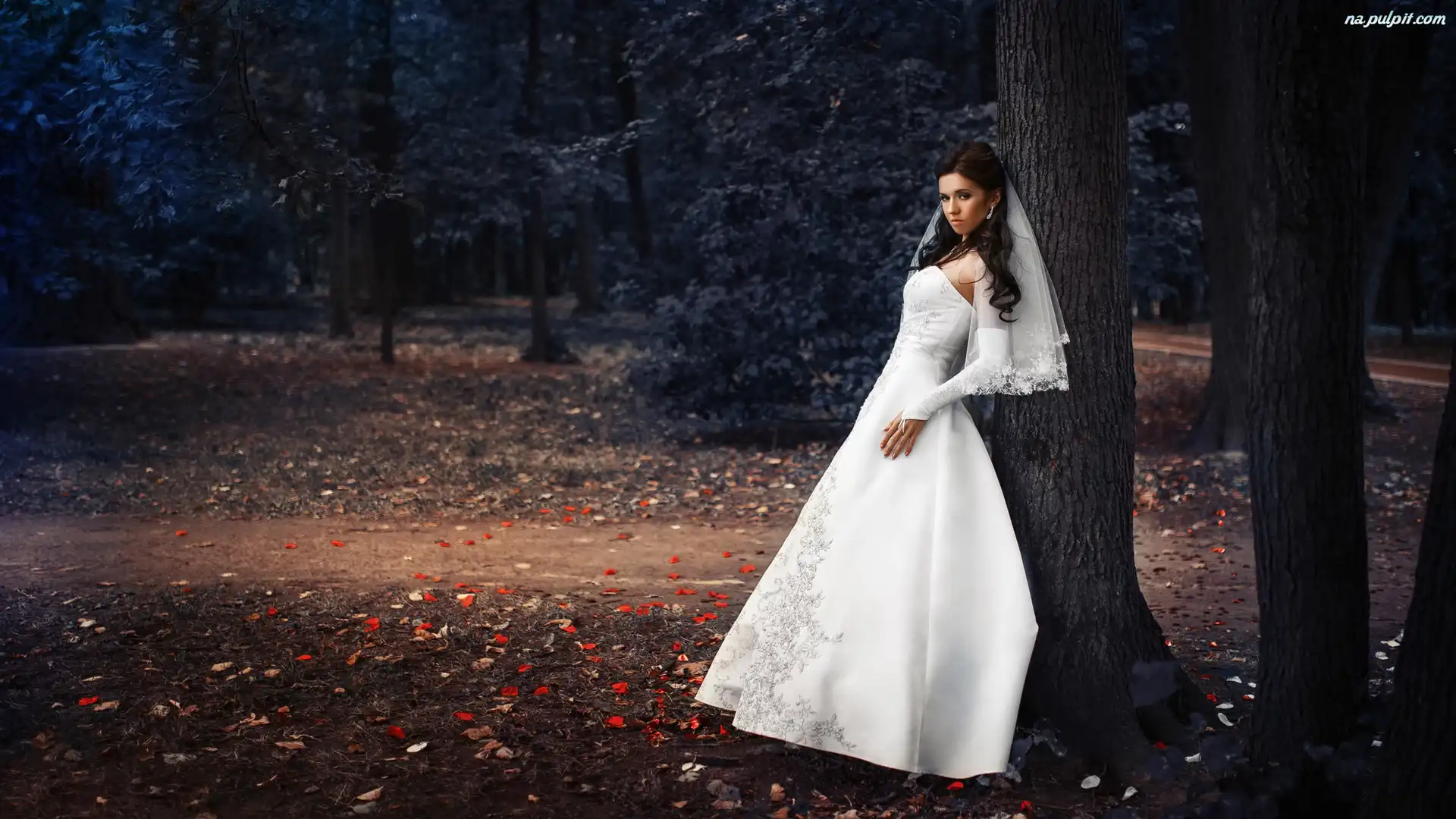 Ślub, Welon, Sukienka, Las, Panna młoda Na Pulpit