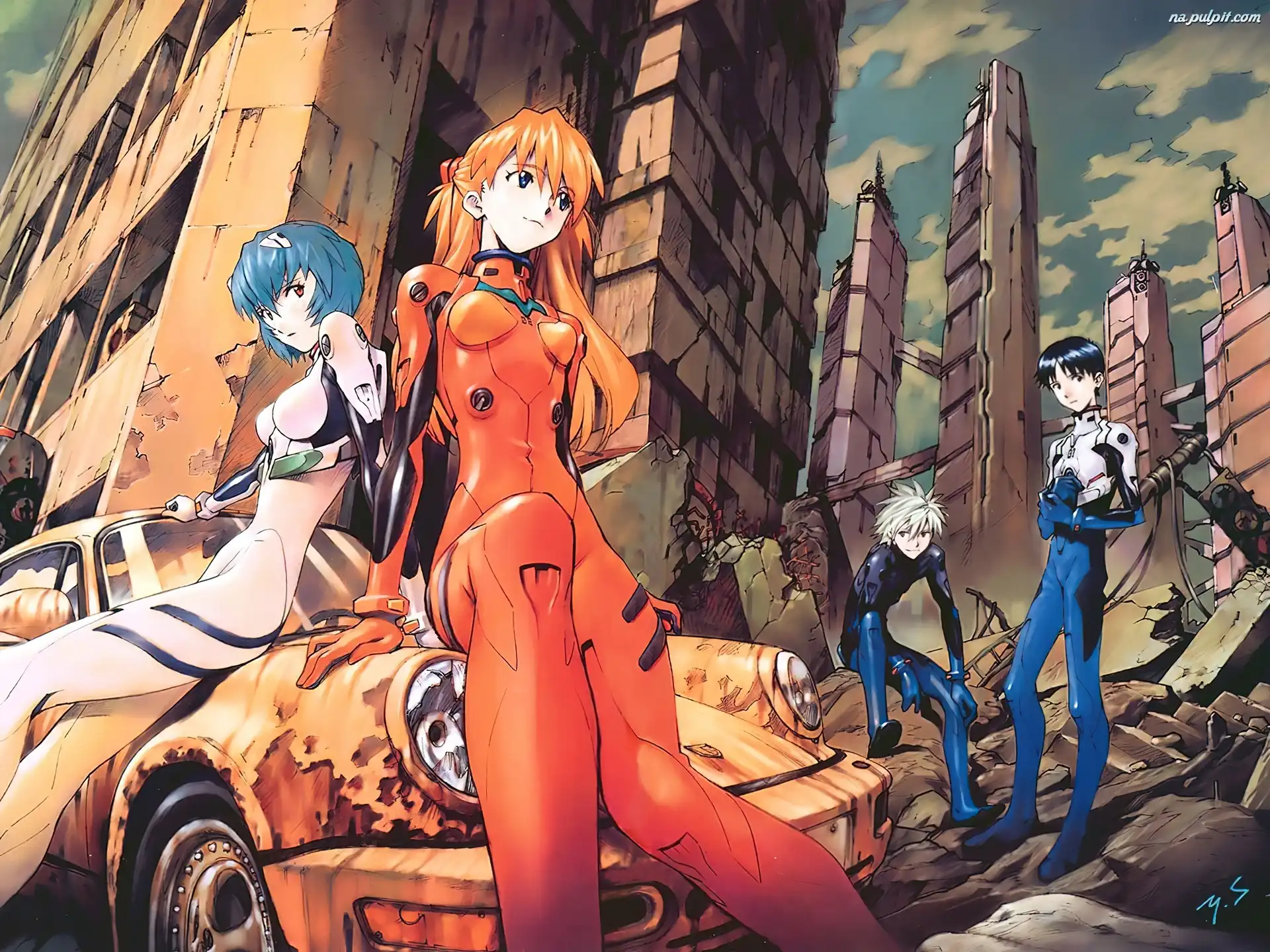 Neon Genesis Evangelion, ruiny, auto, ludzie