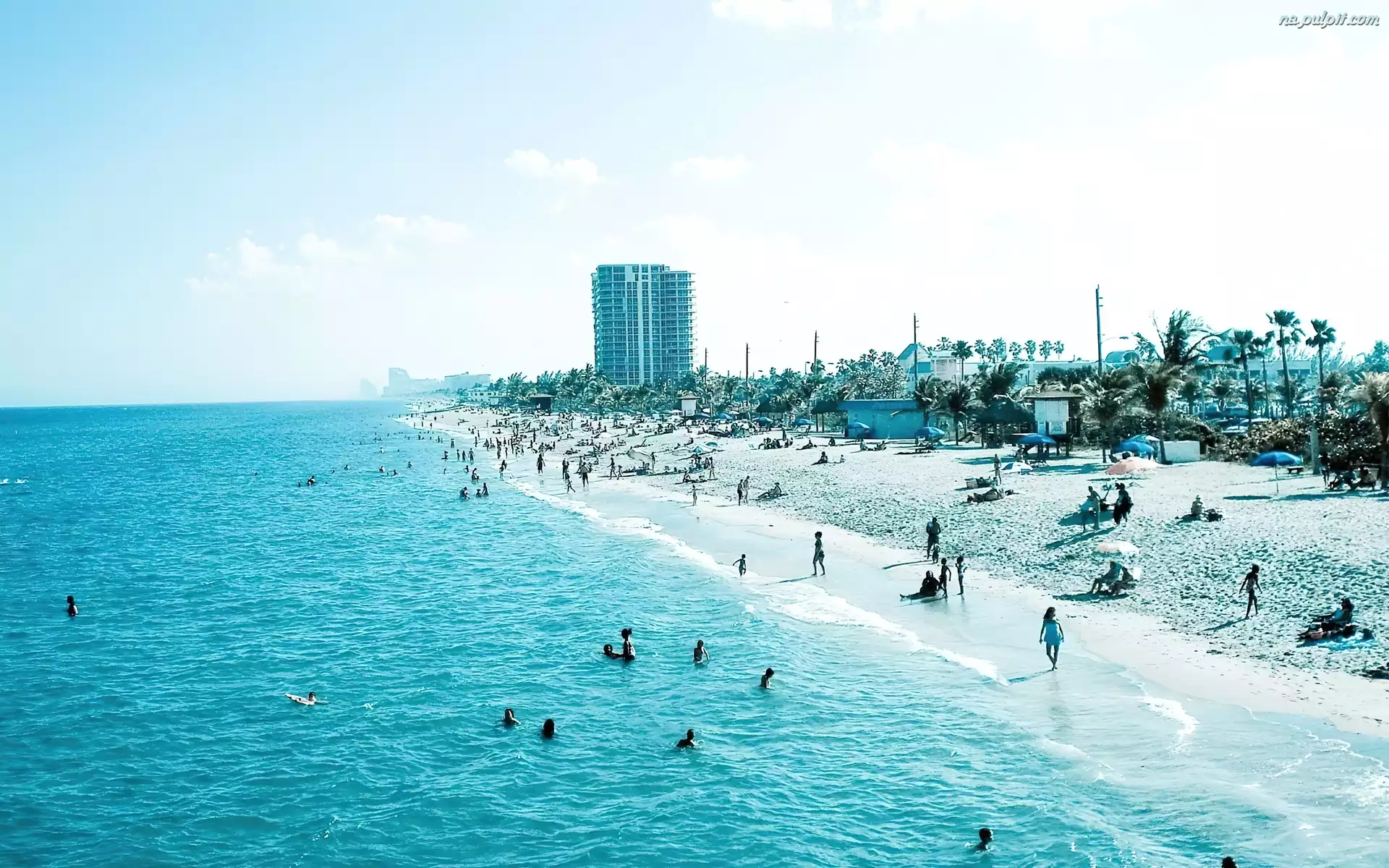 Ludzie, Morze, Plaża, Wybrzeże Na Pulpit