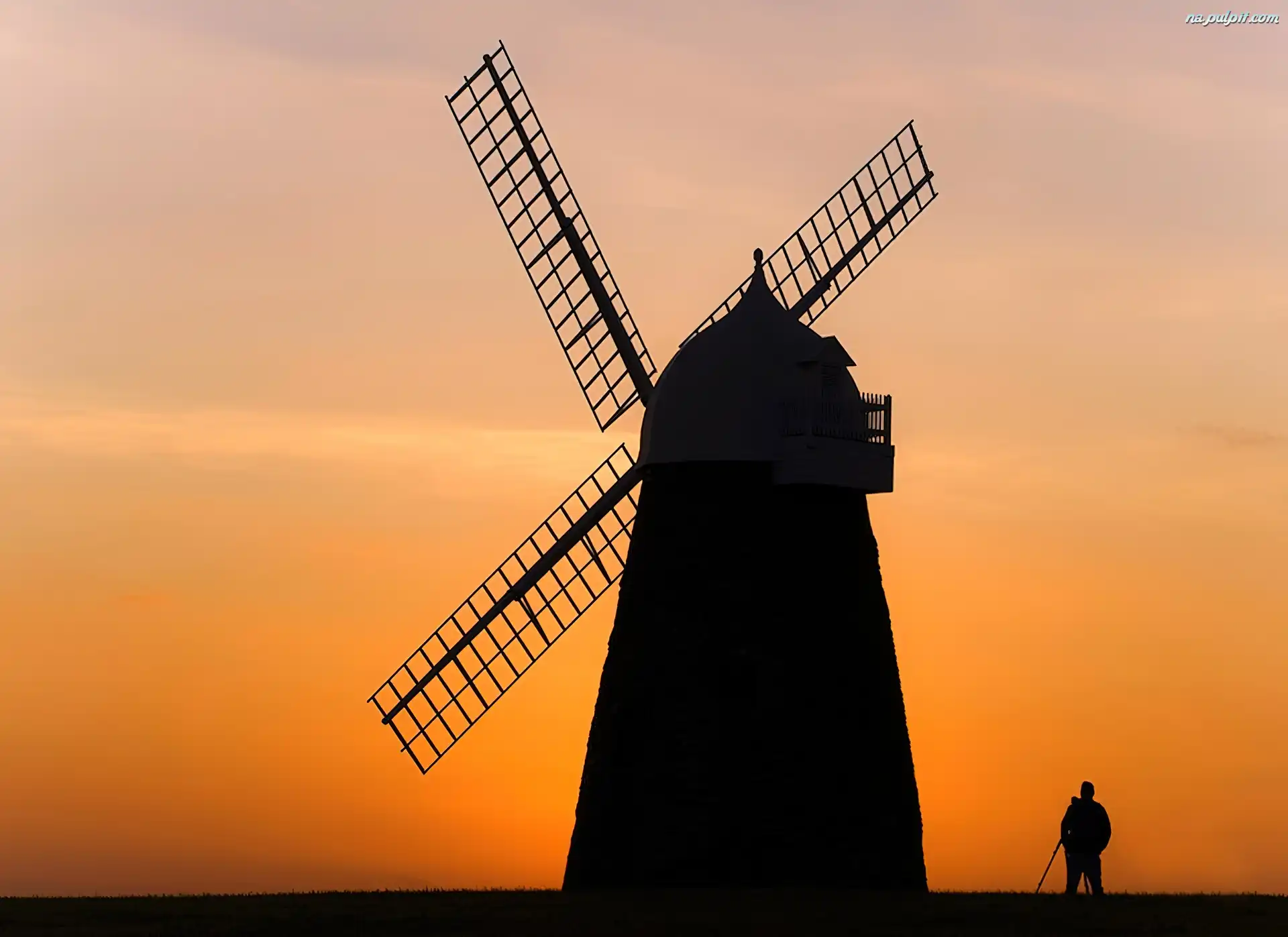Ludzka, Słońca, Niebo, Postać, Wiatrak, Zachód