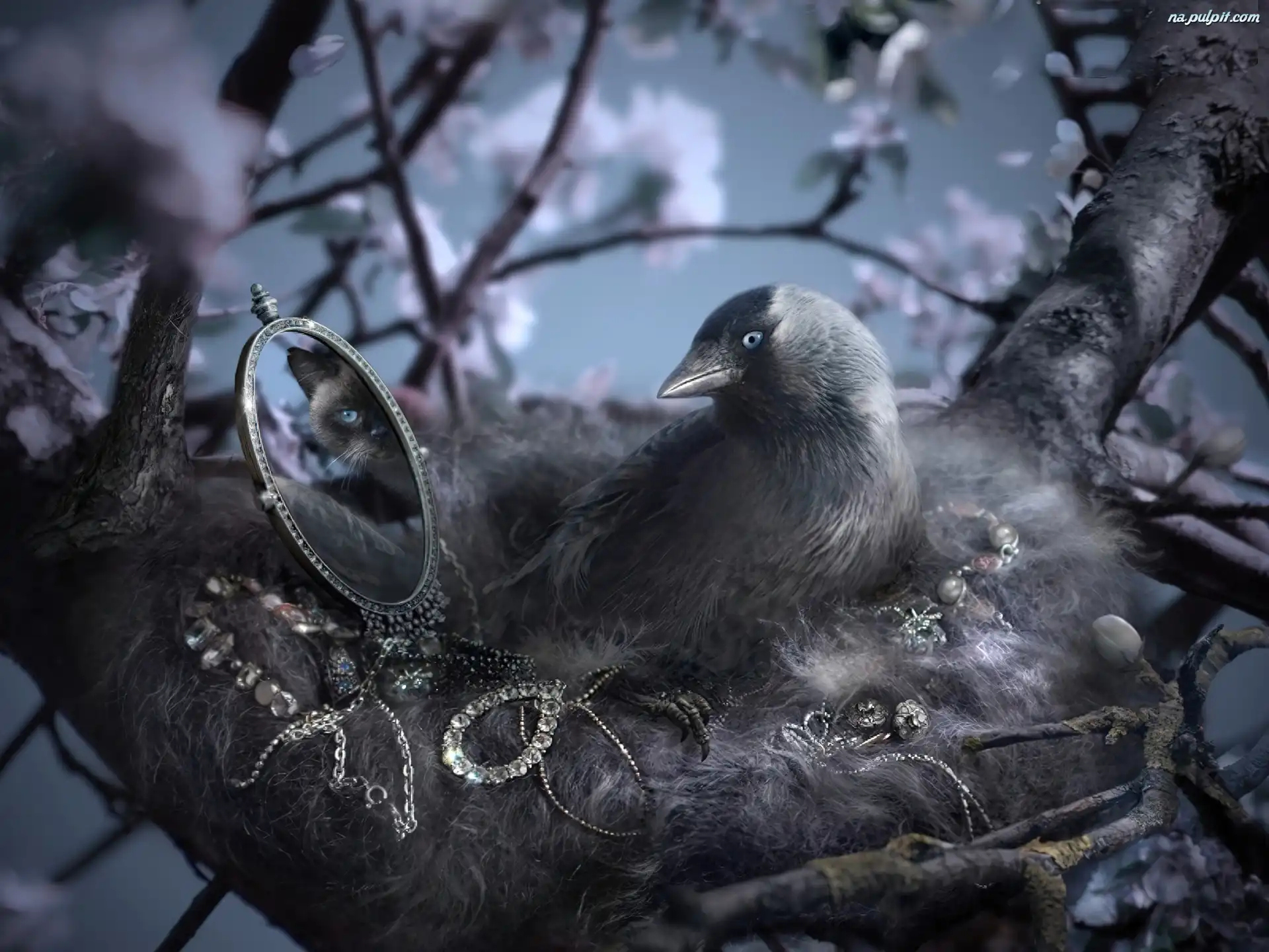Lusterko, Biżuteria, Ptak, Kot