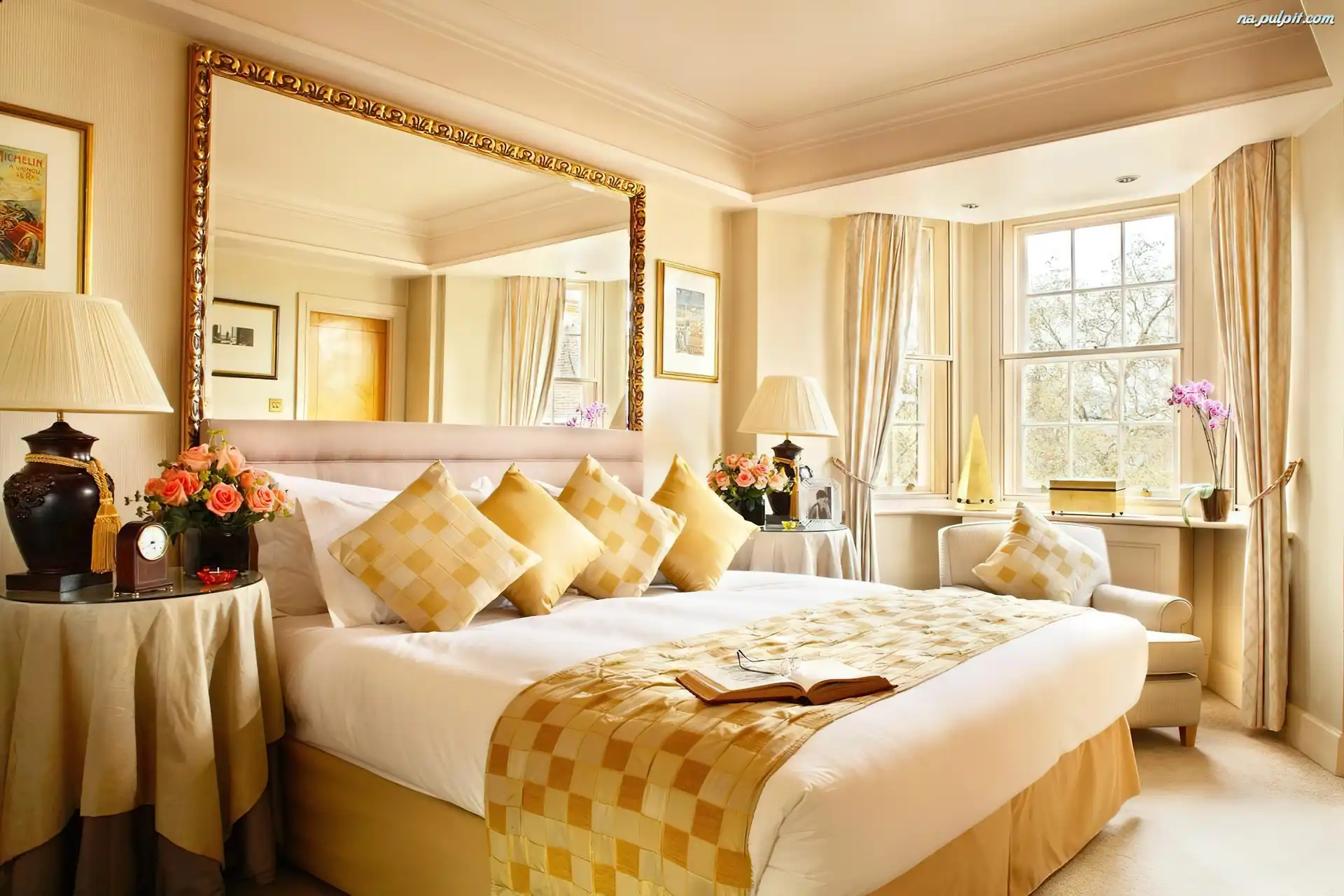 Lustro, Łóżko, Sypialnia, Poduszki Na Pulpit