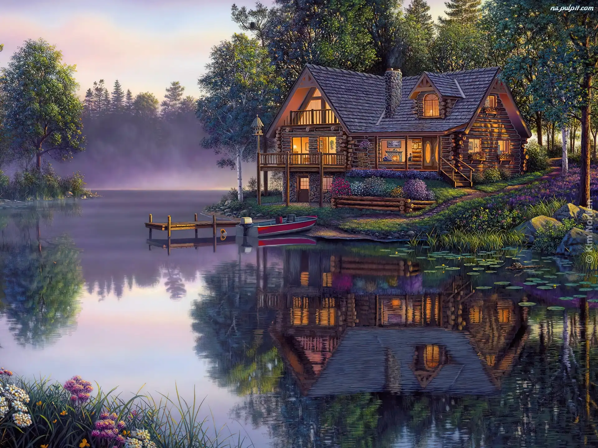 Lustrzane, Łódka, Jezioro, Dom, Odbicie Na Pulpit