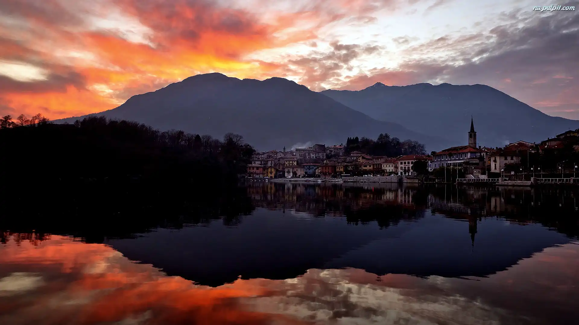Lustrzane, Miasto, Jezioro, Góry, Odbicie Na Pulpit