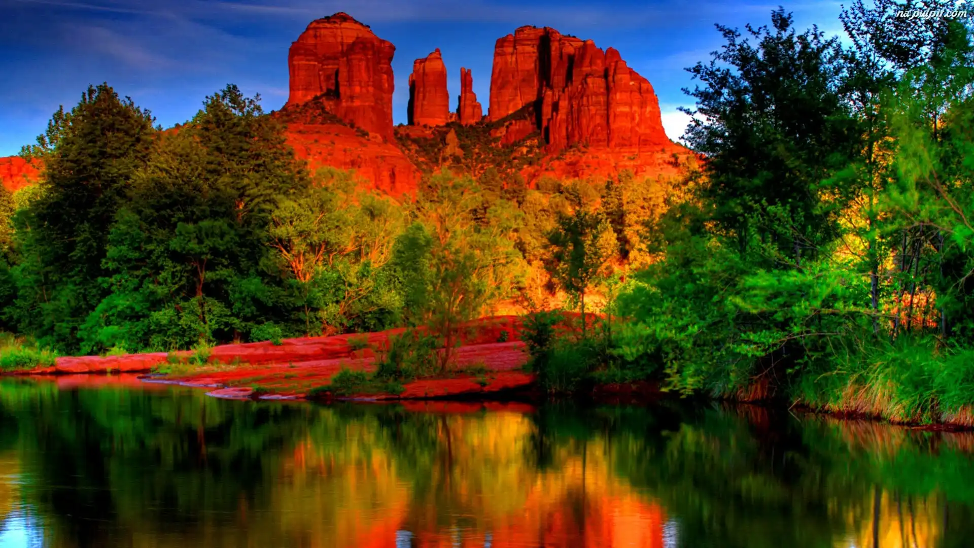 Lustrzane, Jezioro, Skały, Odbicie Na Pulpit