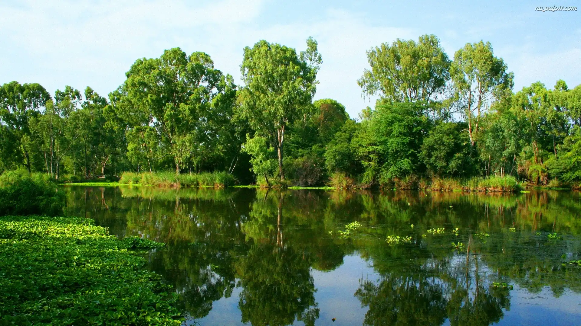 Lustrzane, Drzewa, Staw, Odbicie Na Pulpit