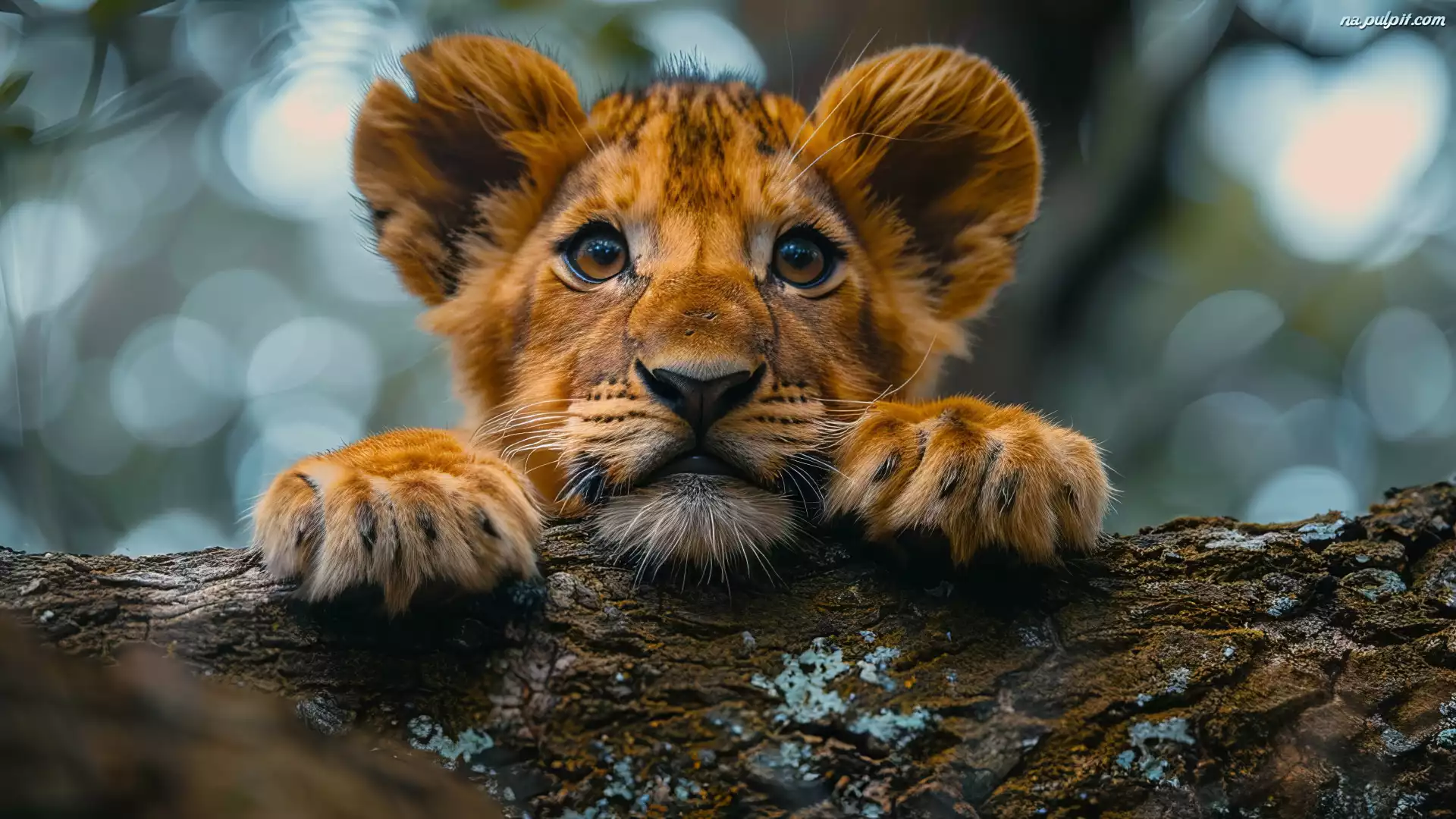 Lew, Lwiątko, Drzewo, Grafika AI Na Pulpit
