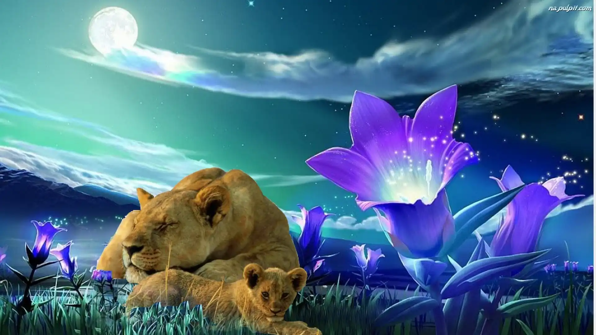 Grafika, Lwica, Młode Na Pulpit