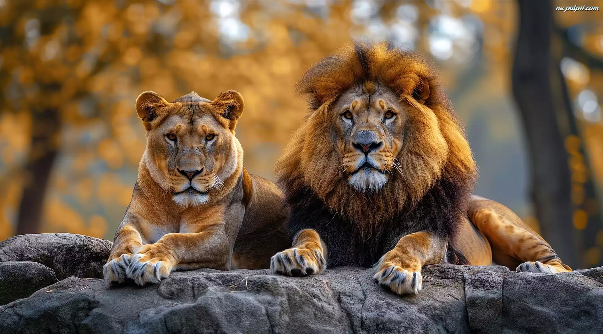Skała, Lwica, Lew, Grafika, Para Na Pulpit
