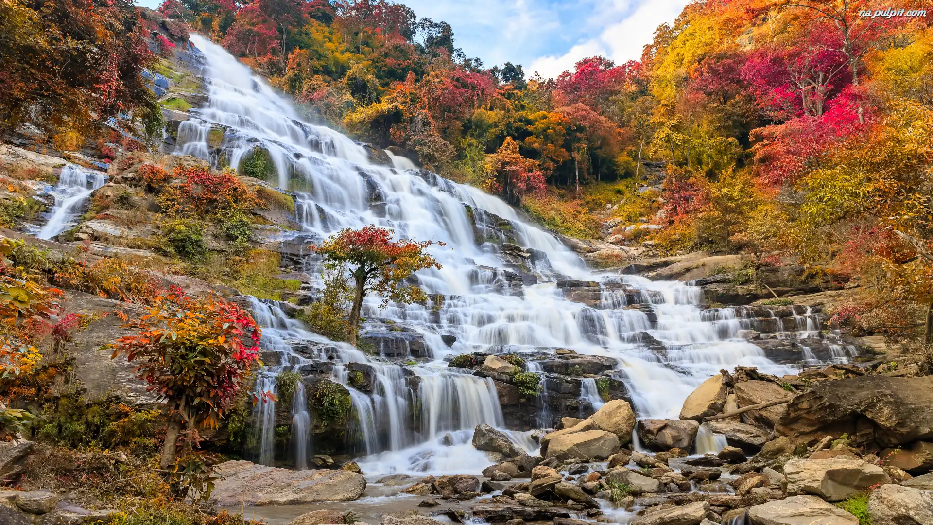 Chiang Mai, Drzewo, Tajlandia, Las, Kamienie, Mae Ya Waterfall, Jesień, Skały, Wodospad, Park Narodowy Doi Inthanon Na Pulpit |