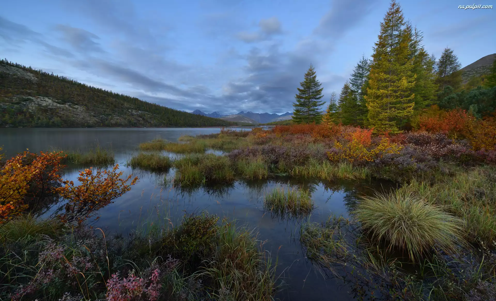 Kołyma, Drzewa, Krzewy, Trawa, Obwód magadański, Rosja, Góry, Jezioro Tantsuyushchikh Khariusov, Wzgórza Na Pulpit |