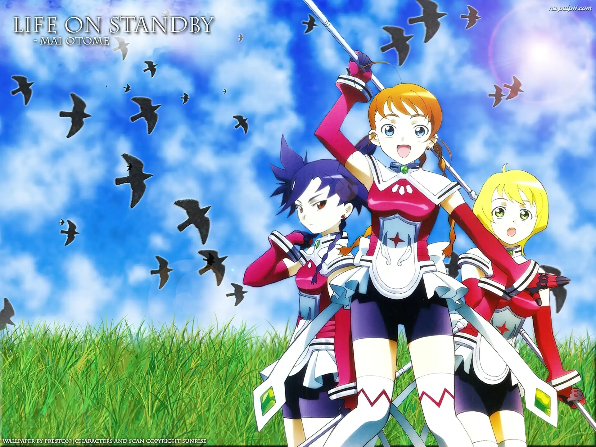 Mai Otome, ludzie, polana, kij, ptaki Na Pulpit