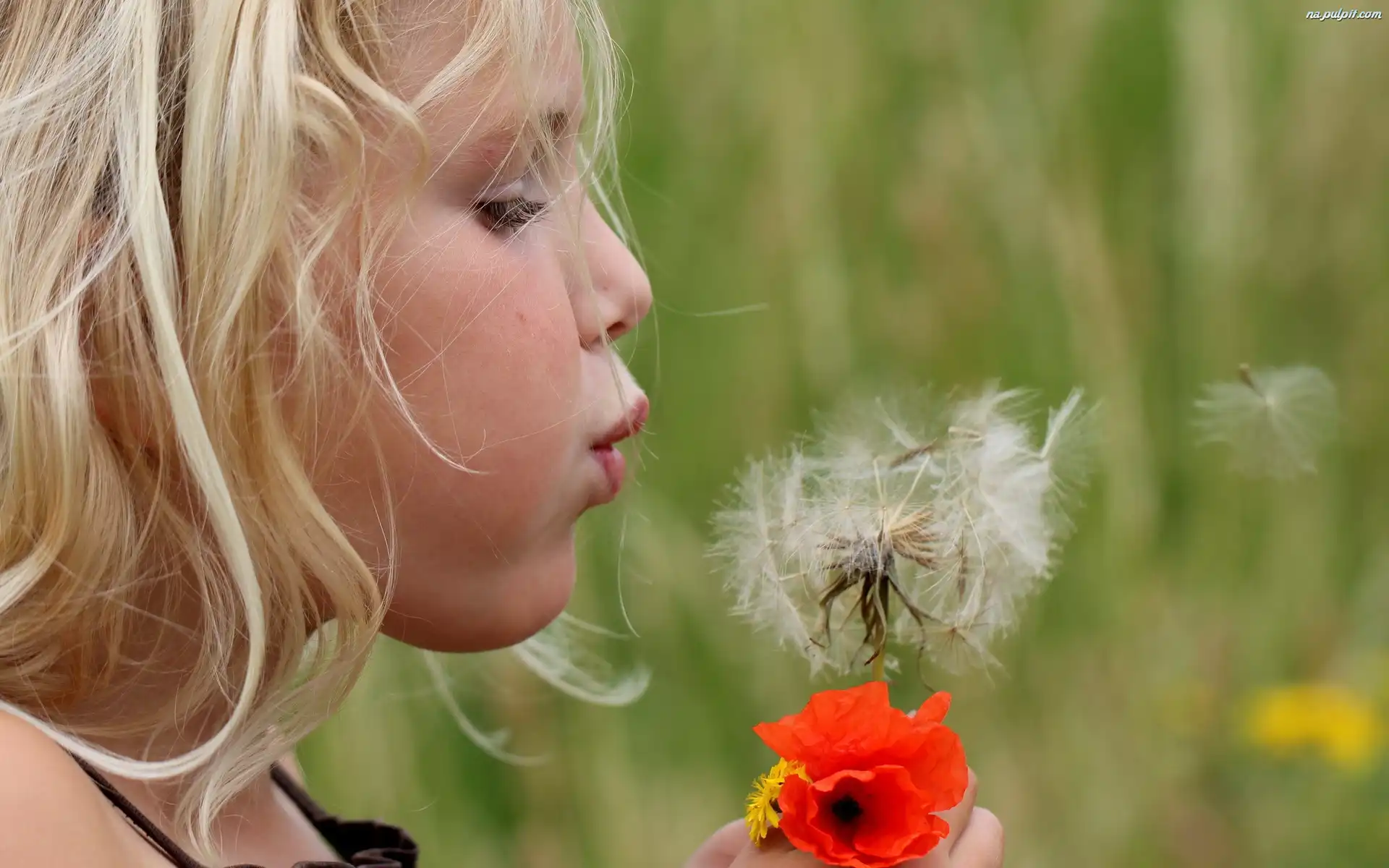 Mak, Łąka, Dziewczynka, Dmuchawiec