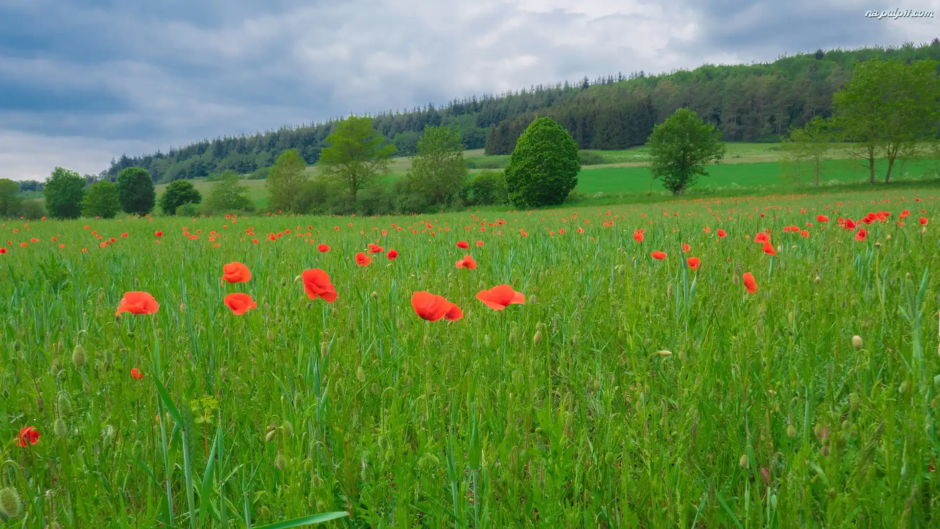Maki, Wzgórze, Chmury, Drzewa, Łąka, Las Na Pulpit
