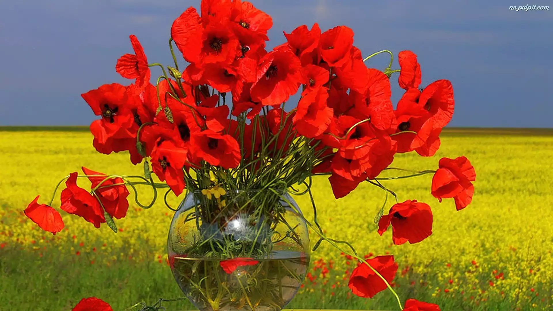 Maki, Łąka, Niebo, Wazon