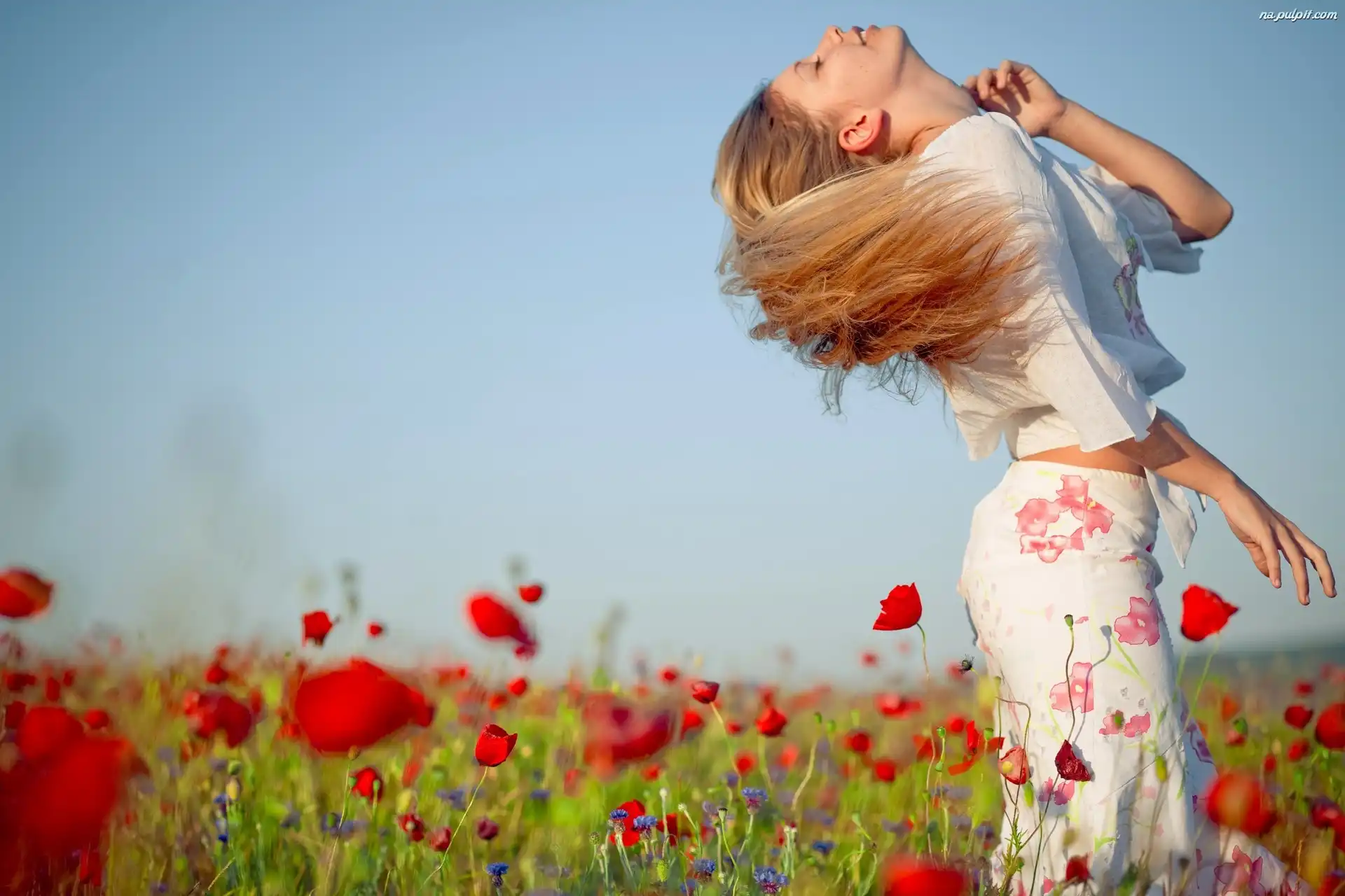 Maki, Niebo, Dziewczyna, Szczęśliwa, Kwiaty Na Pulpit